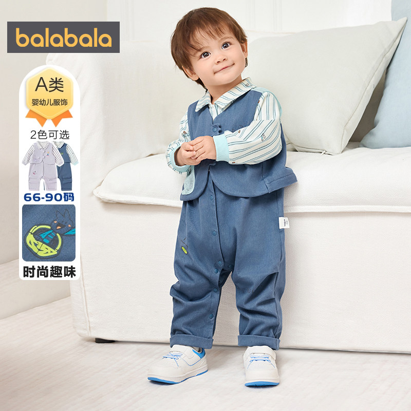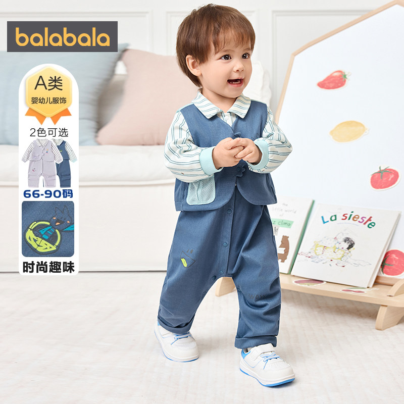 婴儿哈衣萌 童装 巴拉巴拉宝宝连体衣套装 男童女童马甲两件套春秋款