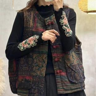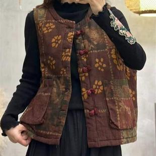 复古国风盘扣马夹棉衣加厚坎肩无袖 外套棉麻冬春原创拼布宽松马甲