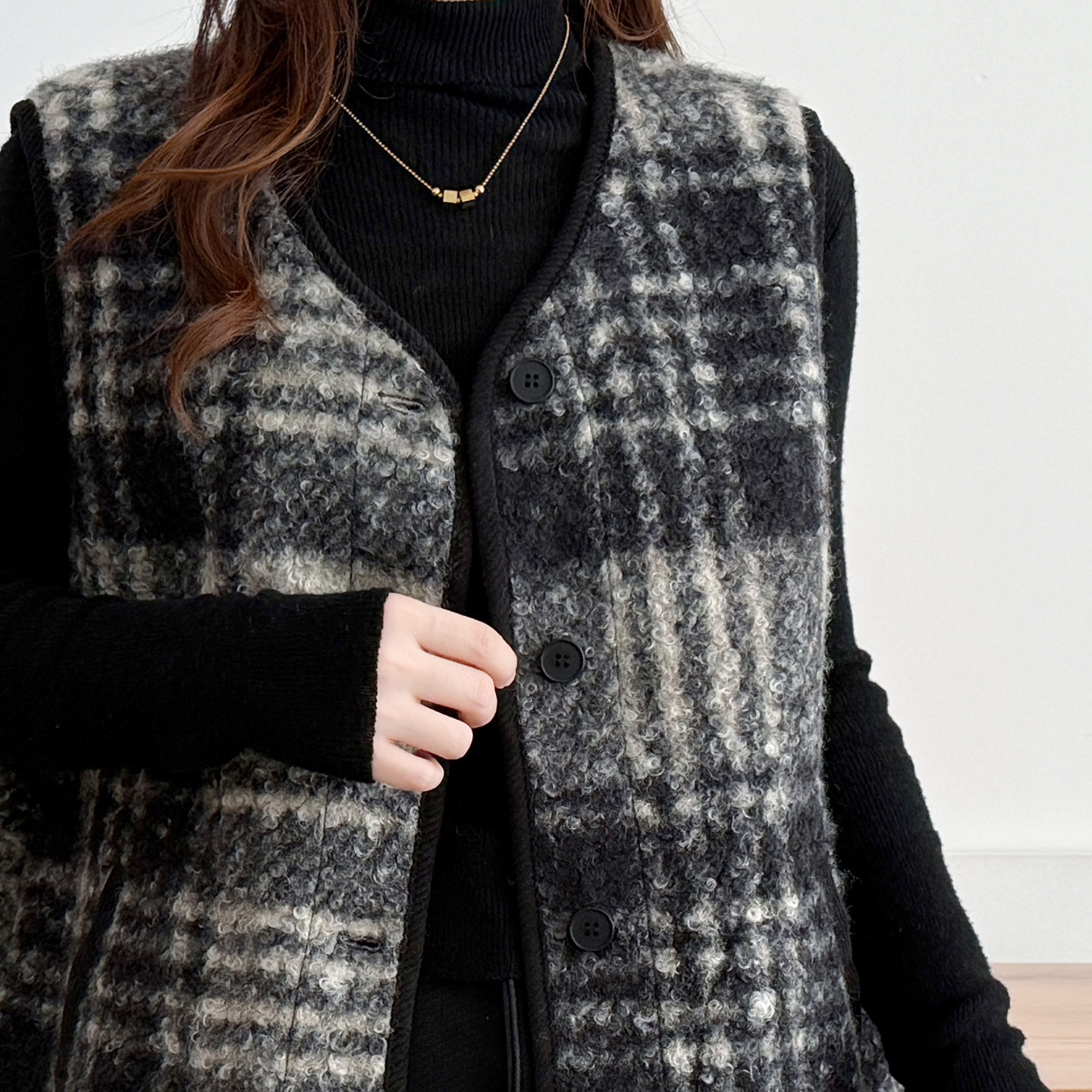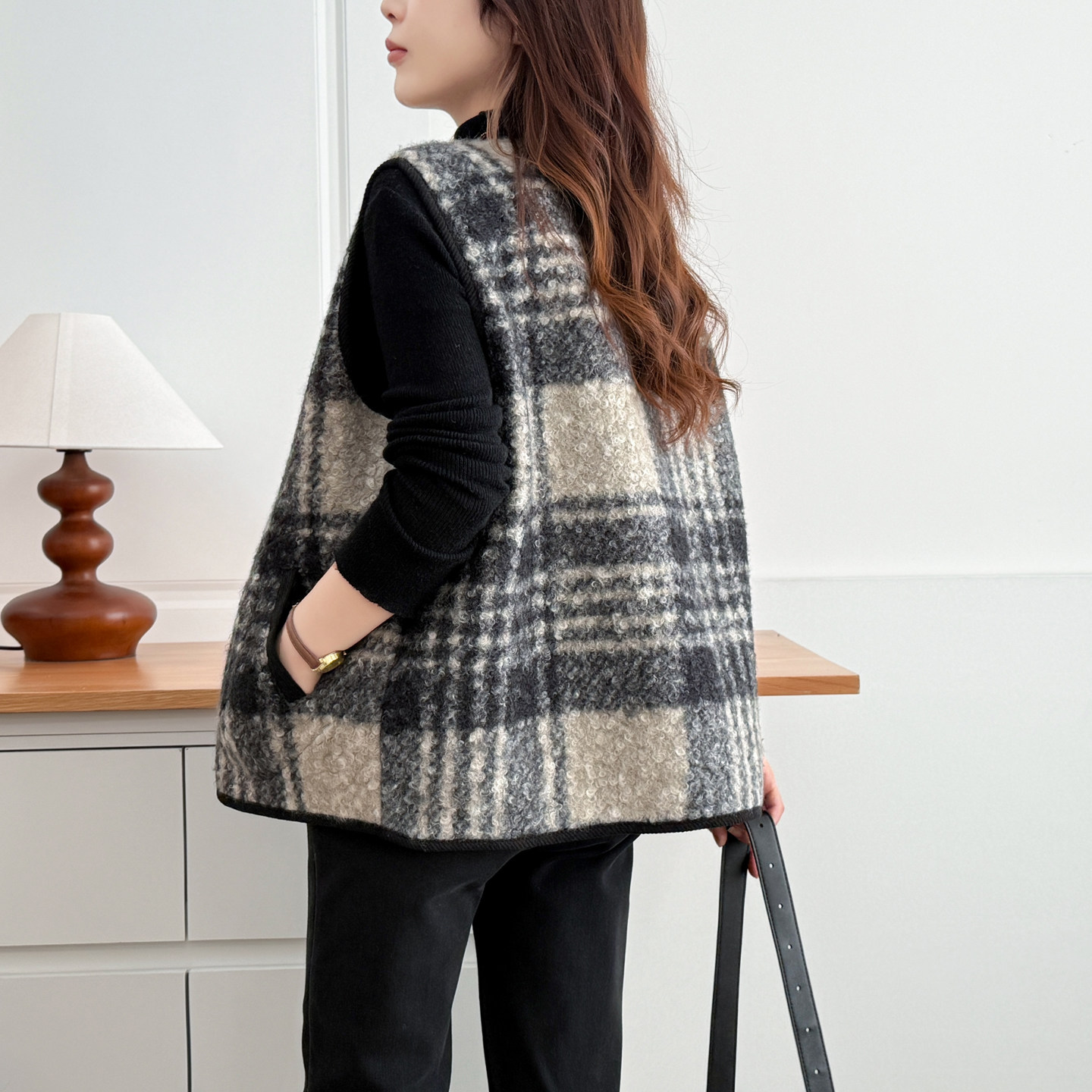 格纹宽松休闲坎肩外套 胖mm200斤时尚 马甲女秋冬外穿大码 2025新款