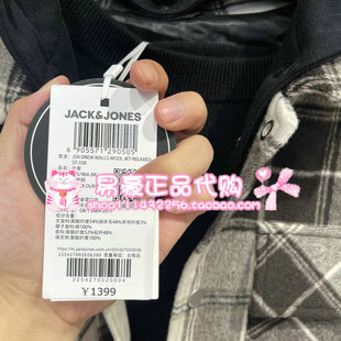 E06 225427044 杰克琼斯毛呢外套男时尚 格纹百搭225427002
