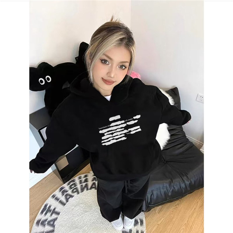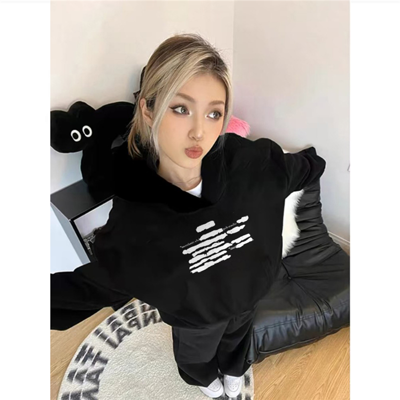 字母潮牌外套 宽松慵懒风秋季 纯棉高街美式 复古连帽卫衣女2025新款