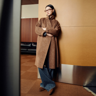 1244C09ZY2 棕榈咖双面呢大衣女毛呢外套长款 婉甸2025年冬季 新品