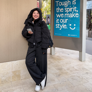 松紧腰加绒休闲裤 胖mm显瘦窄版 女冬季 木子理想大码 子200斤 直筒裤