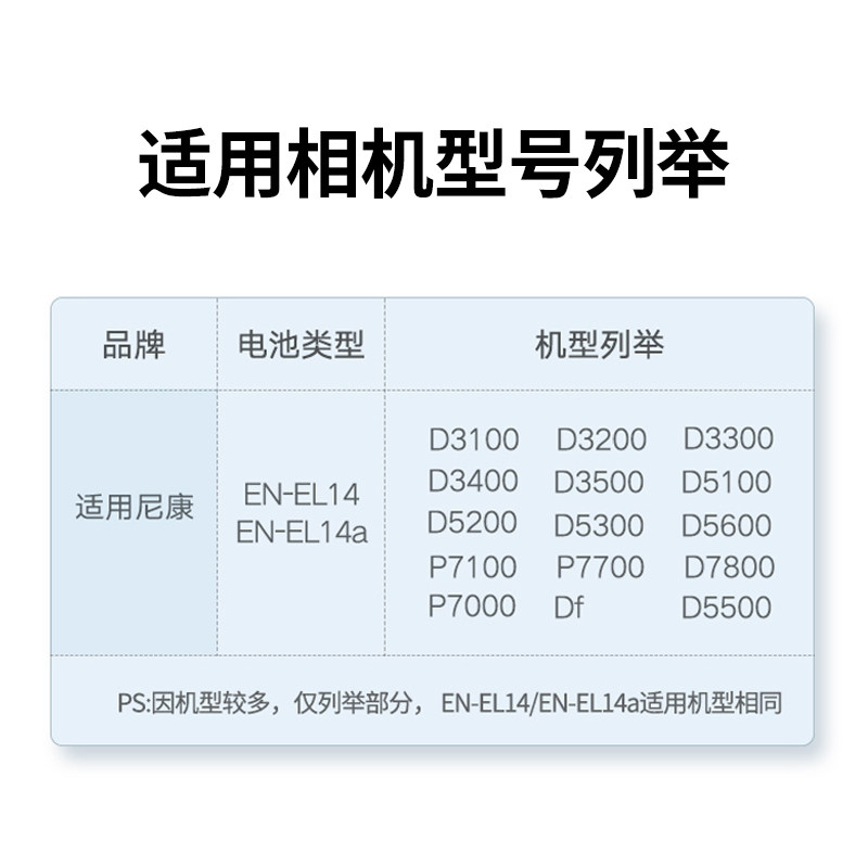D5300 P7100充电器 D3400 D5100 D5600 D3300 D3100 D3500 D5500 品胜相机电池EN D5200 EL14适用于尼康D3200