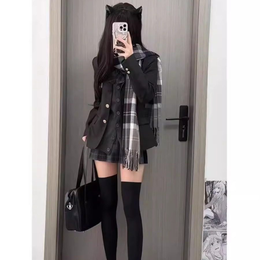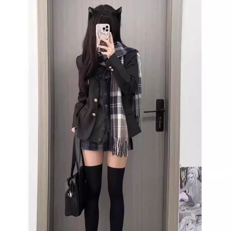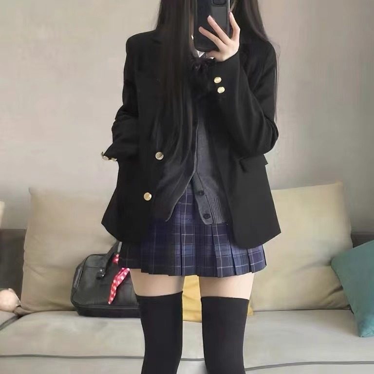 秋冬季 外套正版 学院风黑色西服叠穿三件套裙女 西装 原创jk制服套装