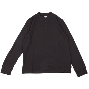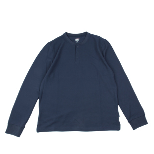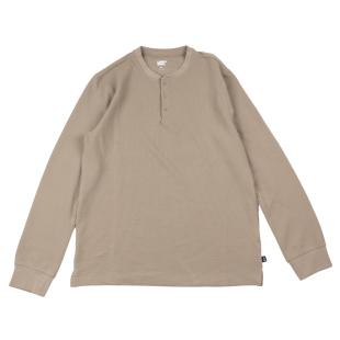 长袖 纯色美式 外贸男纯色门筒领打底衫 t恤 咔叽华夫格亨利领长袖