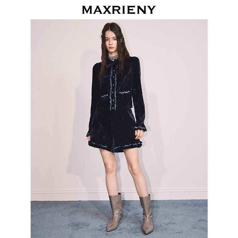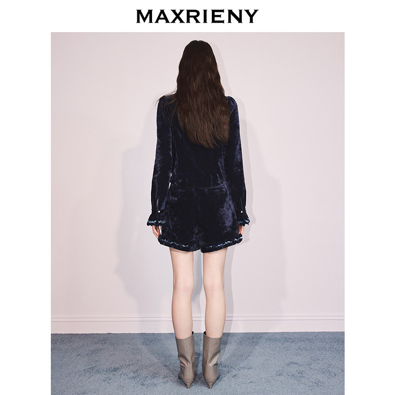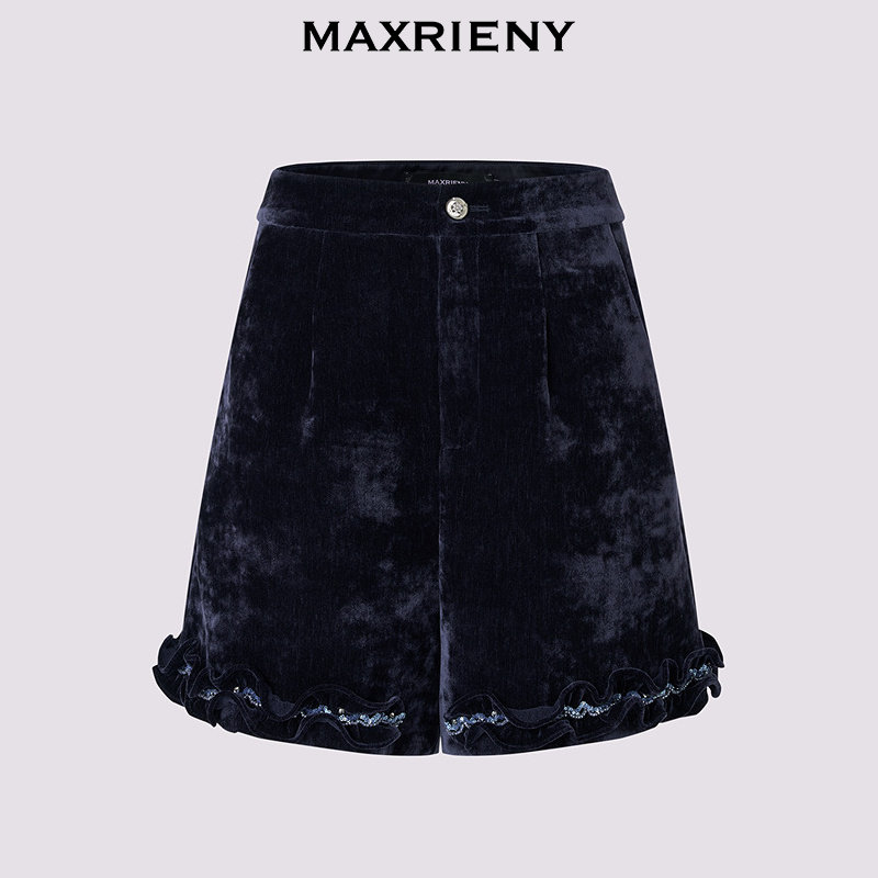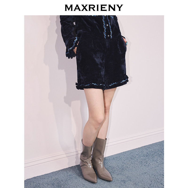 25冬款 复古荷叶边伞型丝绒裙裤 MAXRIENY法式 阔腿短裤 商场同款