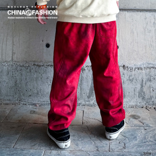 红色蜡染垂感加大秋冬百搭休闲运动长裤 加绒卫裤 男 男装 NE潮牌大码