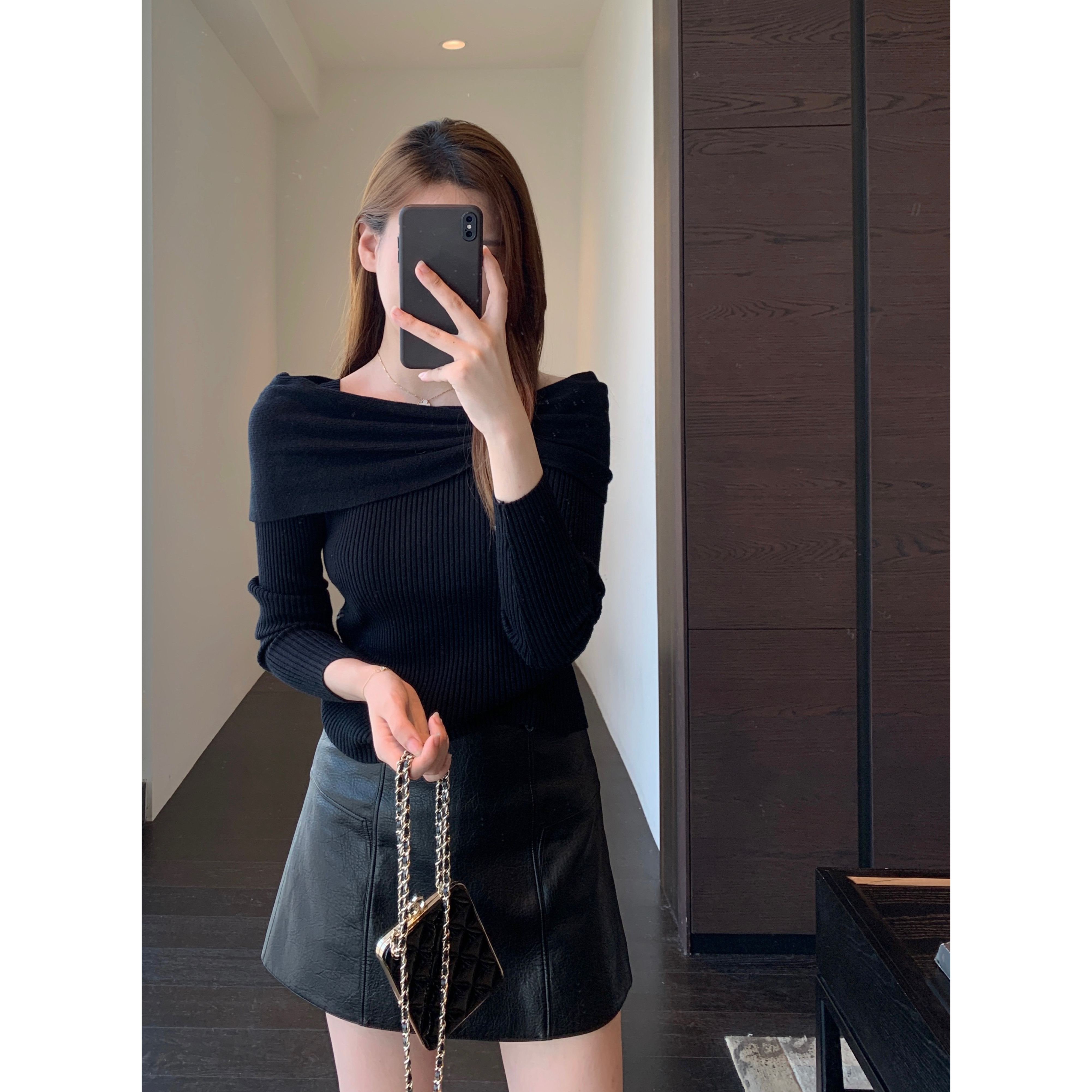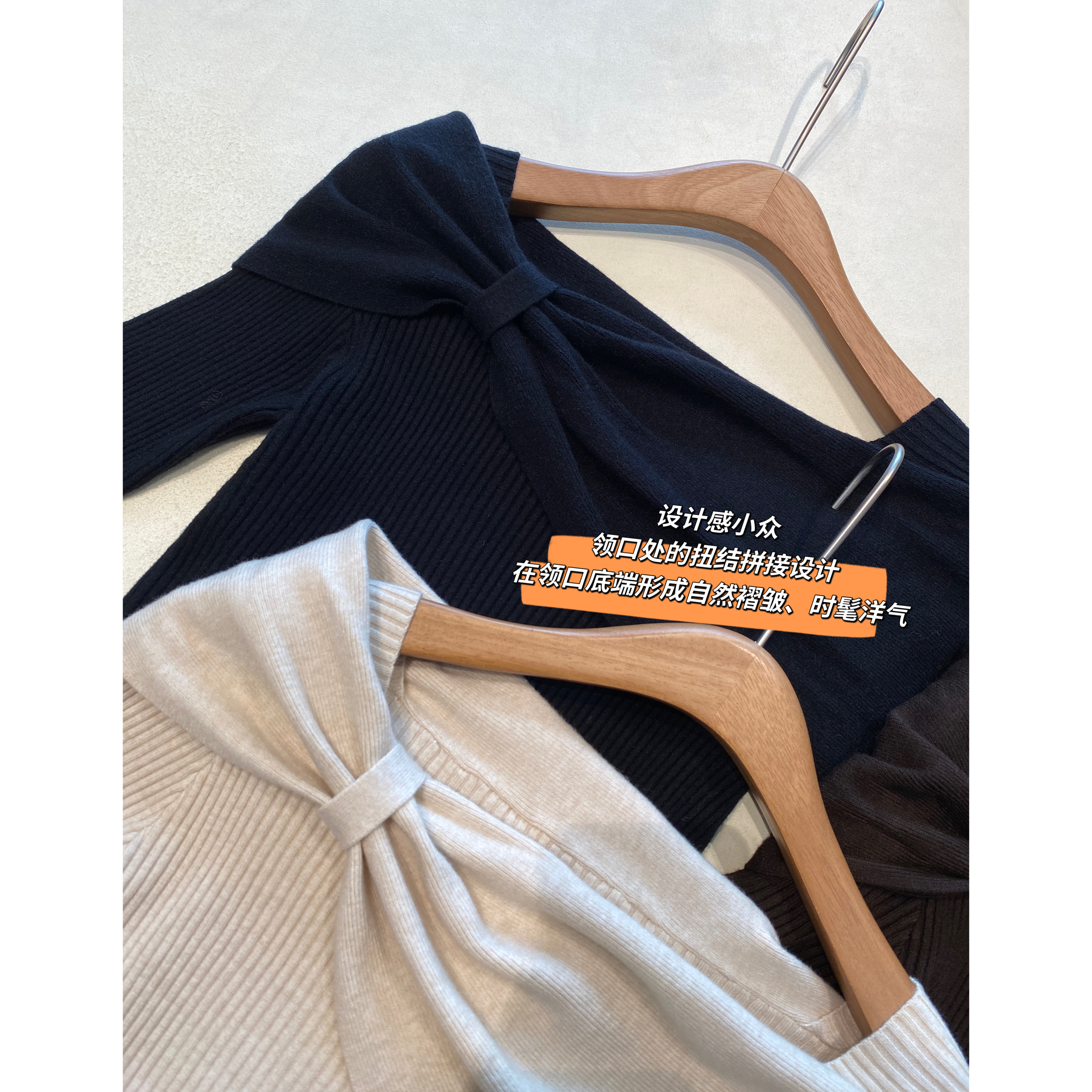 女秋冬新款 设计感小众 显瘦针织打底衫 洋气纽结气质修身 AMR