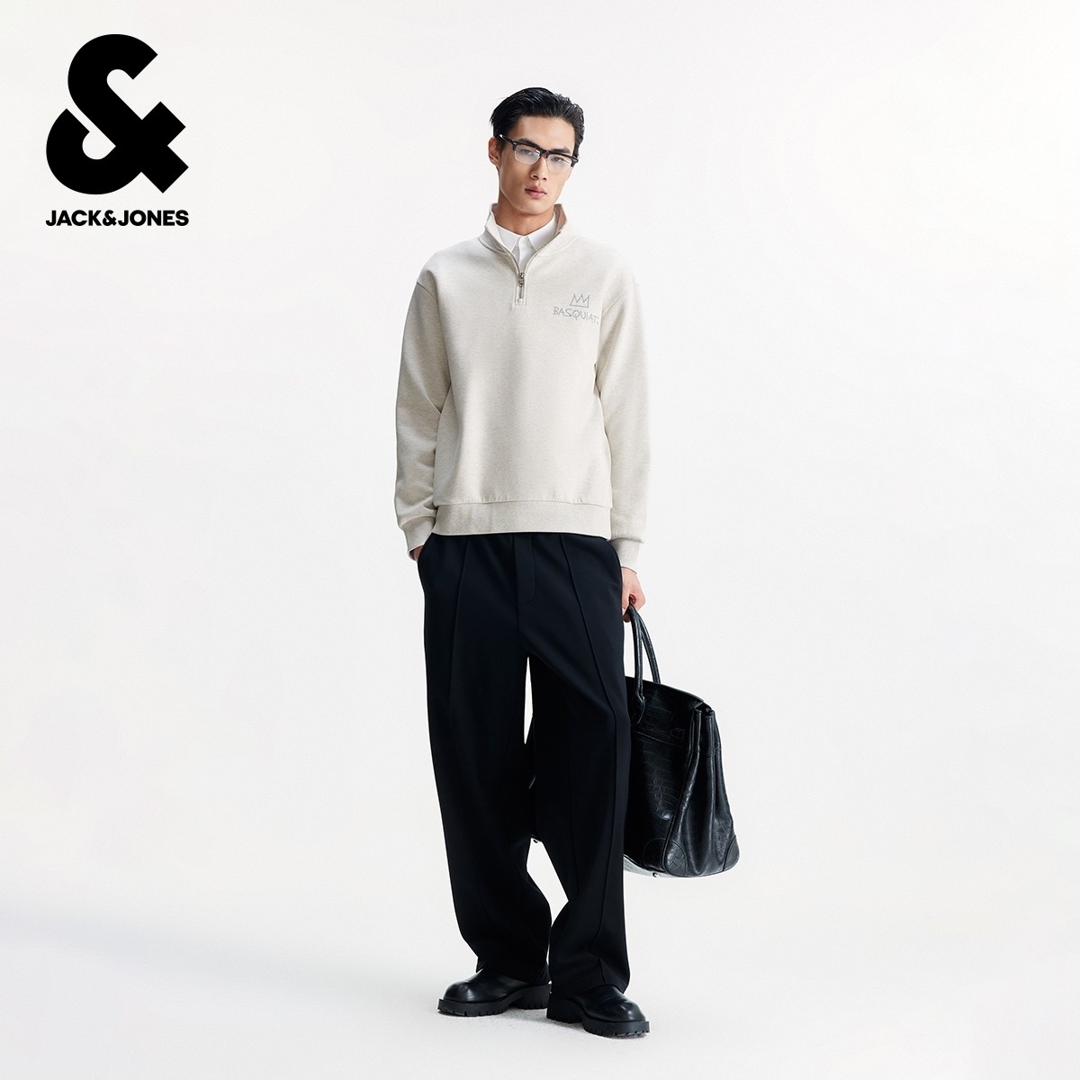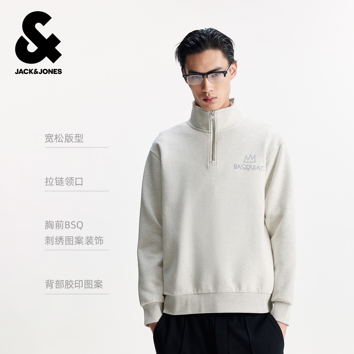 新款 秋季 胶印图案休闲宽松半高领拉链卫衣 男装 杰克琼斯BSQ联名款