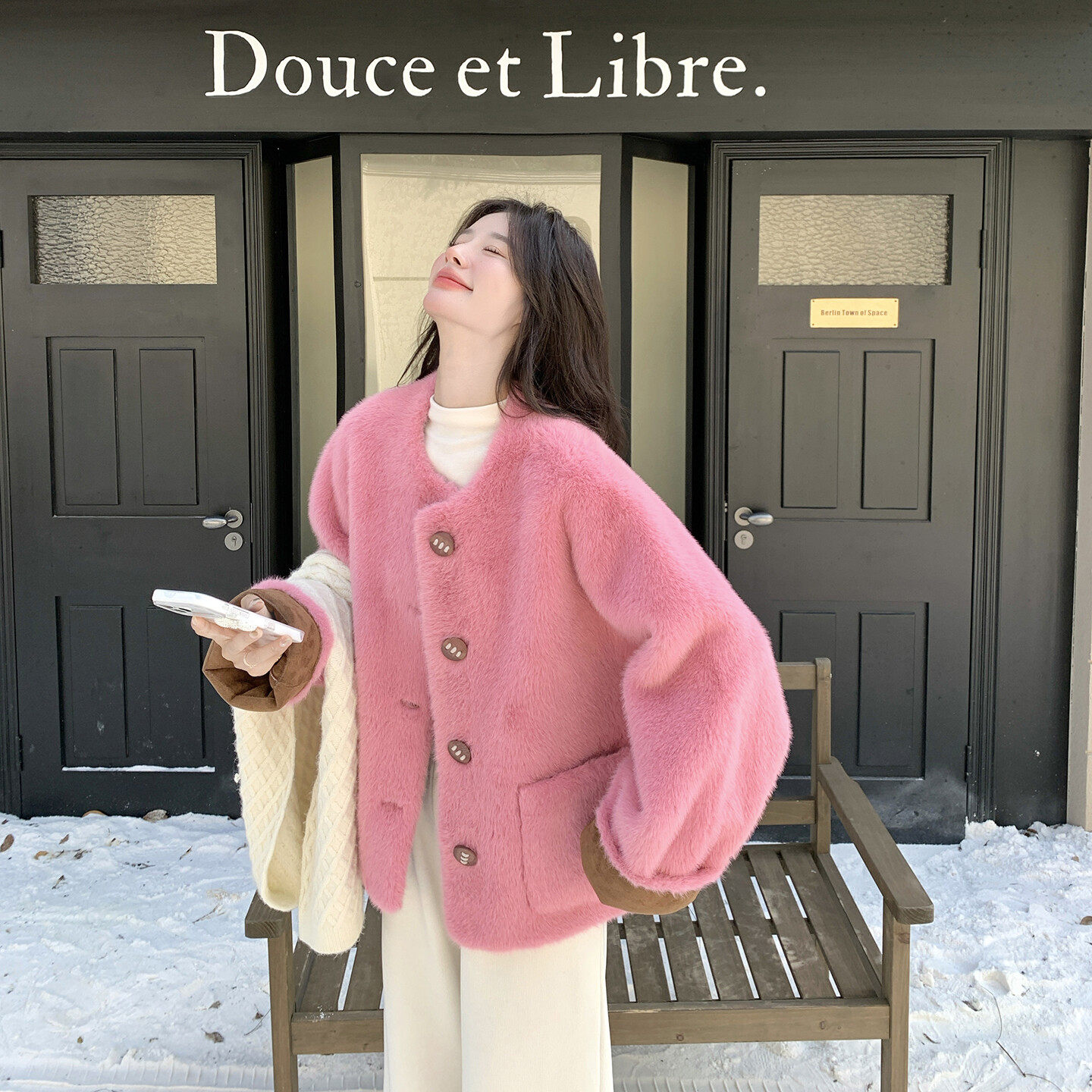 收腰显瘦百搭减龄保暖棉袄外套 粉色毛领羽绒棉服短款 2025冬季 新款
