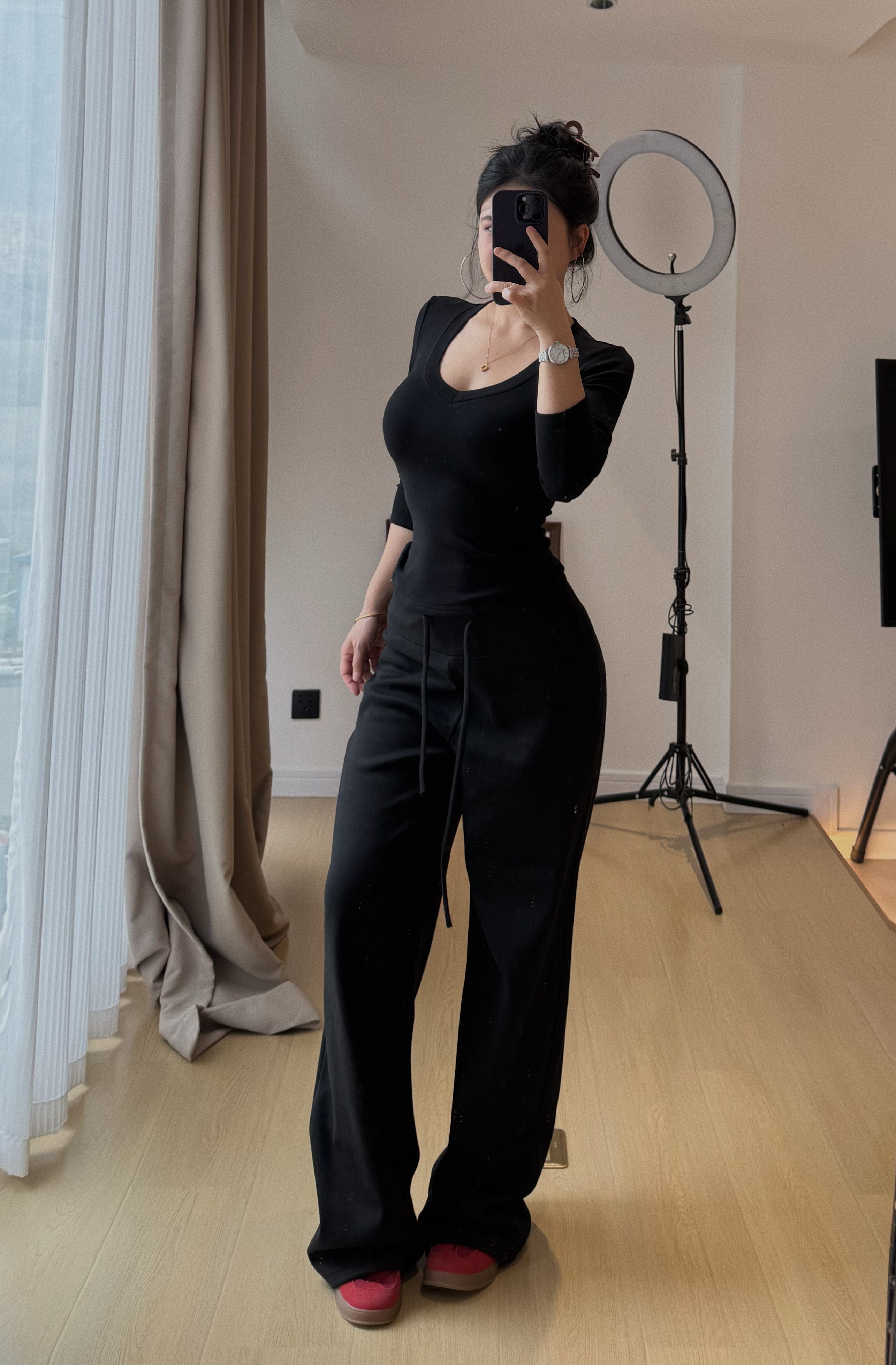 Veryrareme洗水低腰螺纹腰头抽绳卫裤 窄版