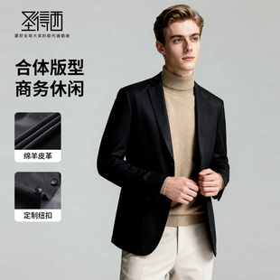 商务休闲百搭西装 真皮皮衣2025秋冬季 圣得西男士 风外套 绵羊皮
