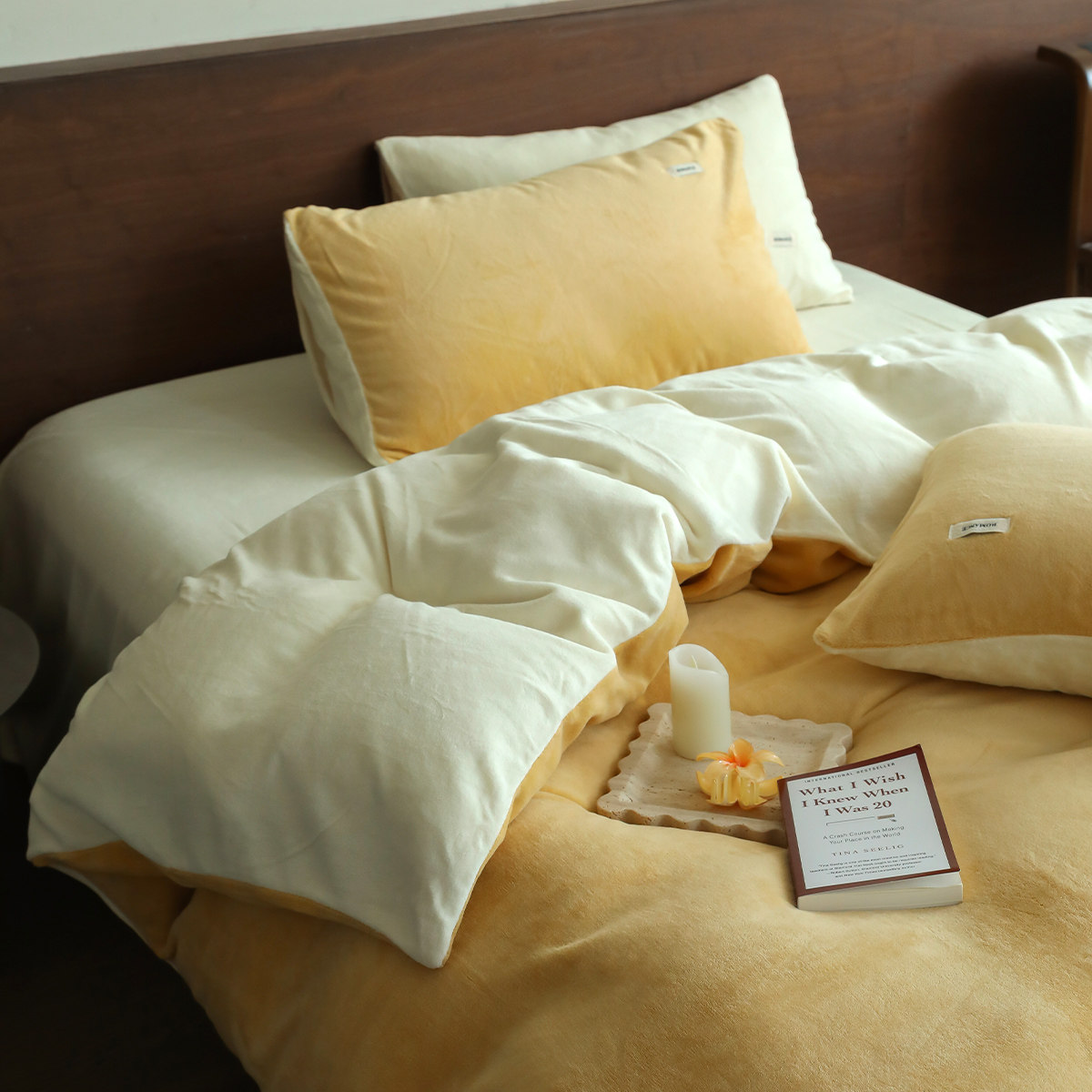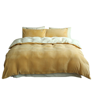 牛奶绒被套单件简约拼色珊瑚绒冬季 加厚法兰绒被罩1.5米单双人