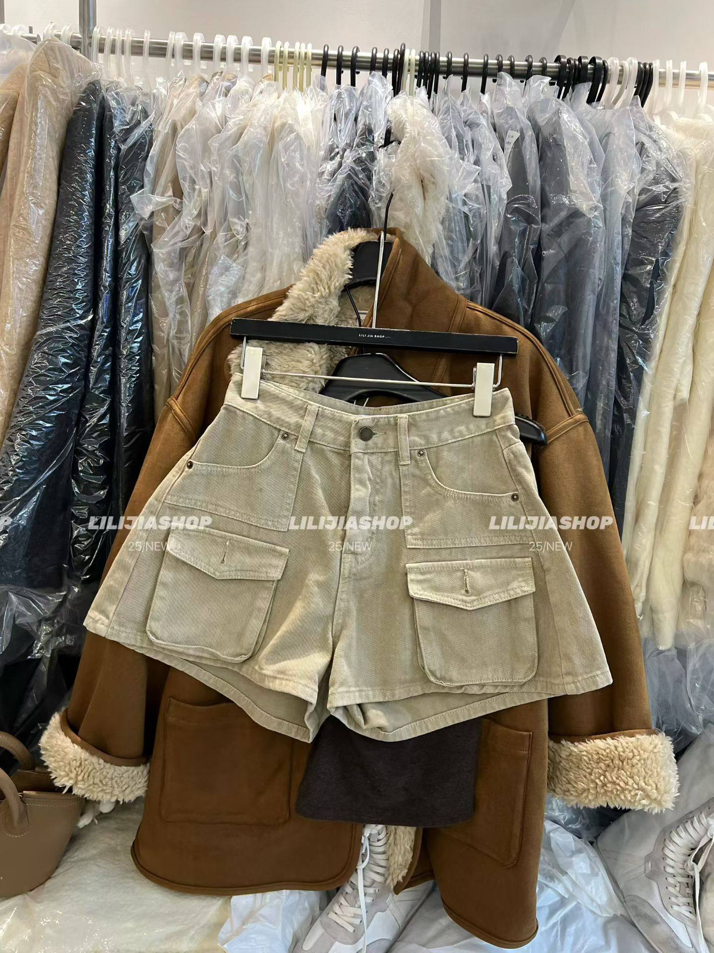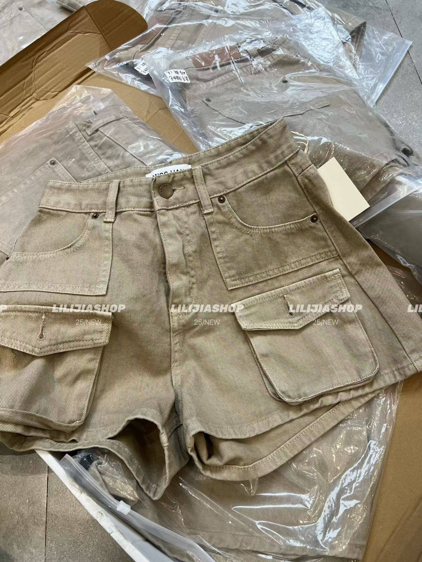 韩版 2025秋冬新款 时尚 百搭宽松显瘦高腰工装 女 牛仔短裤 五折