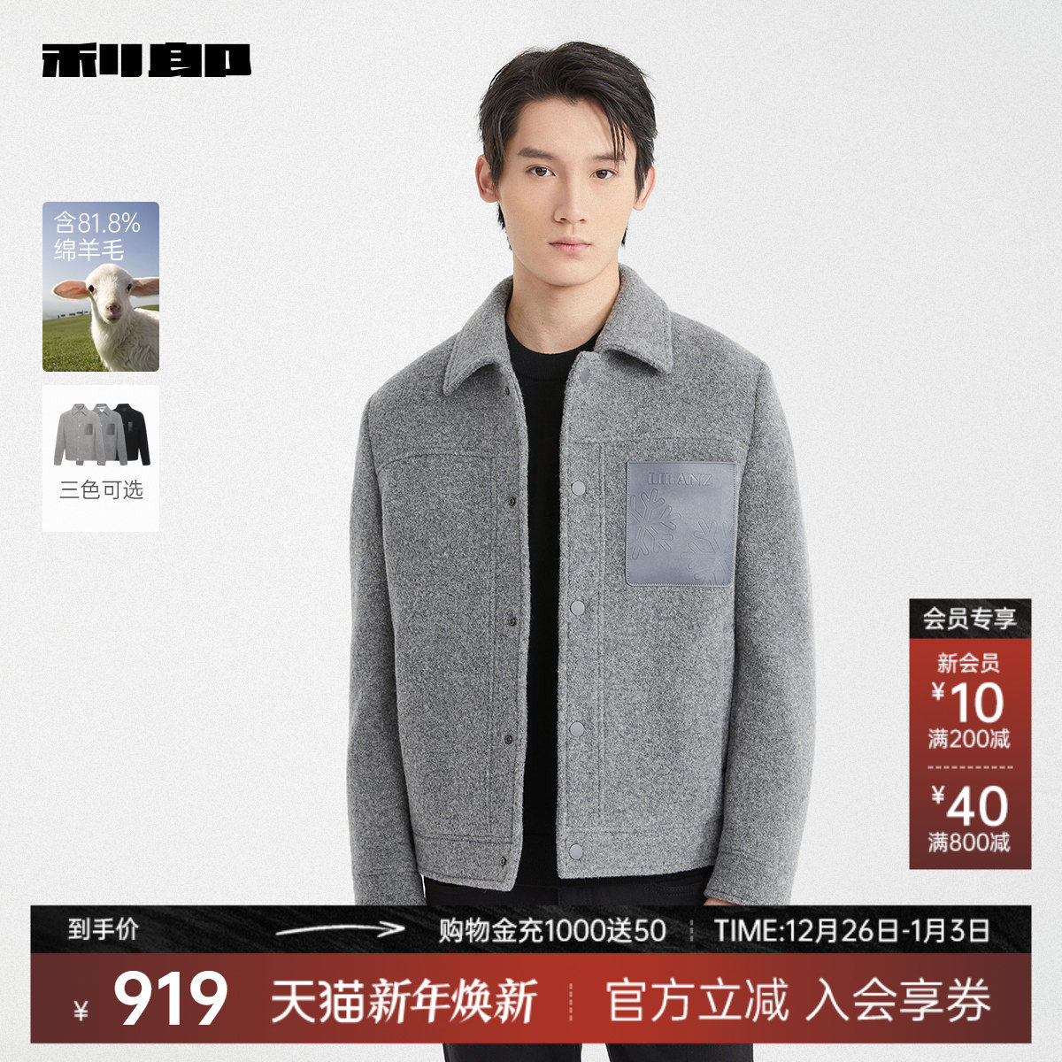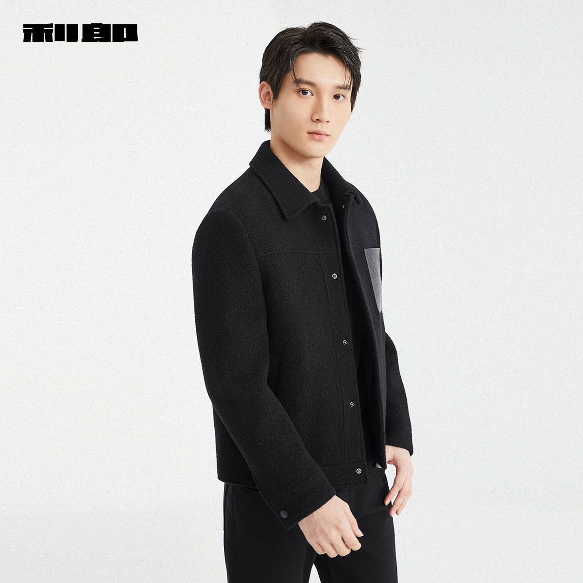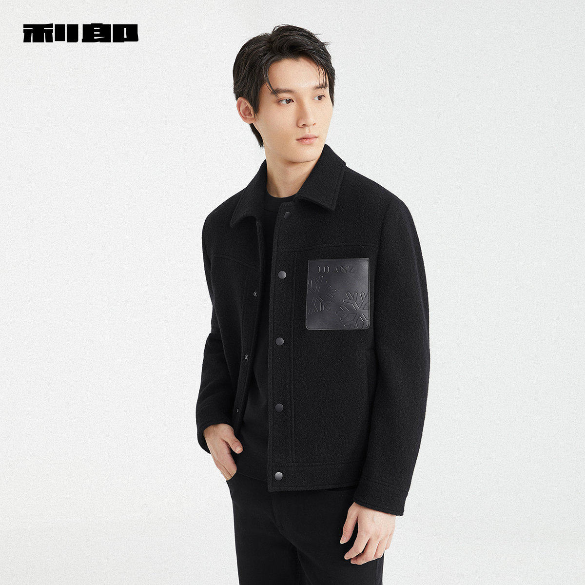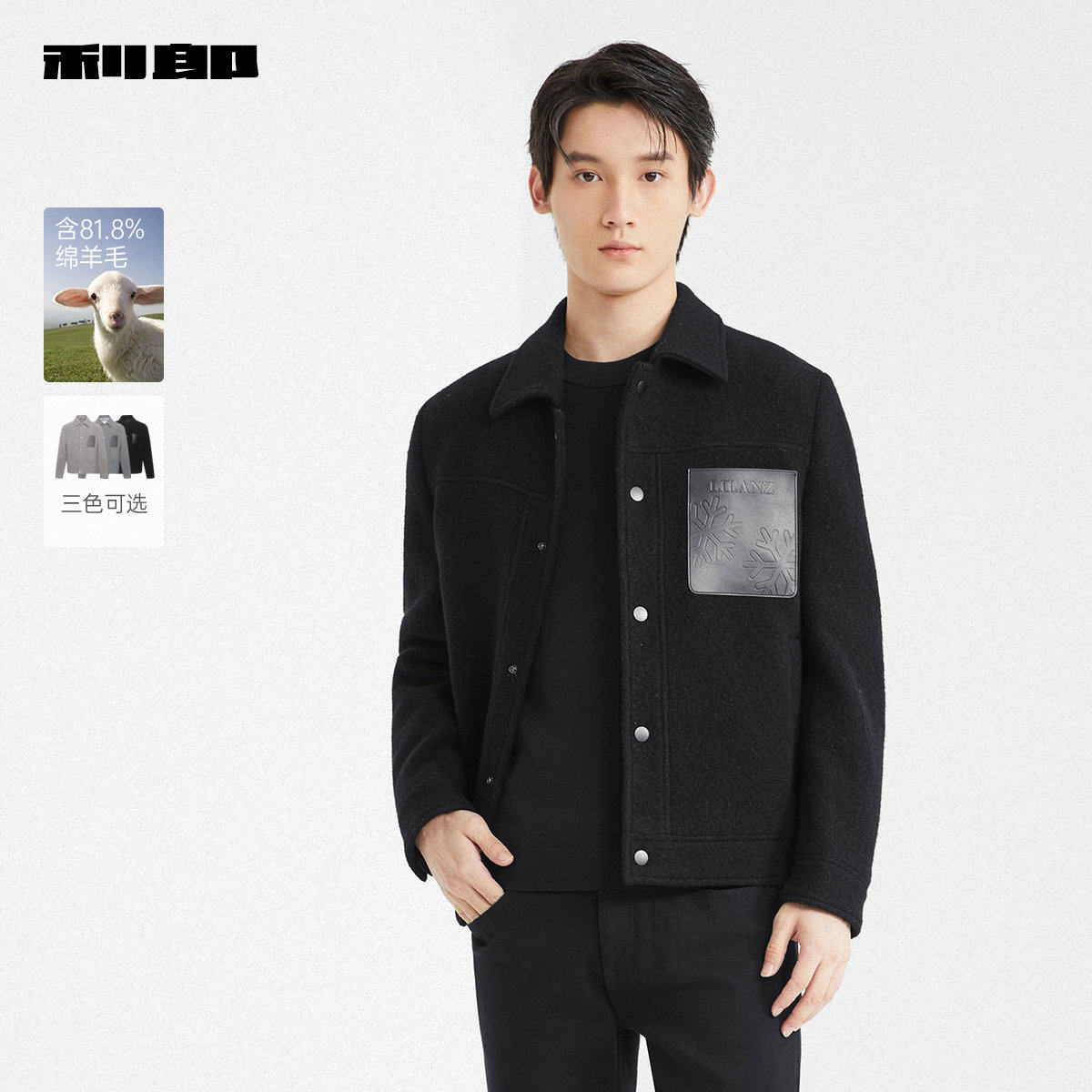 含绵羊毛 压花时尚 利郎官方 翻领2025冬季 外套 毛呢大衣男士