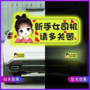 实习期车贴新手上路女司机反光贴磁吸汽车标志个性 饰车贴纸驾驶 装
