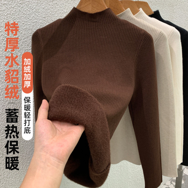 保暖内搭毛衣针织衫 秋冬季 女士2025新款 芬腾半高领加厚加绒打底衫