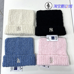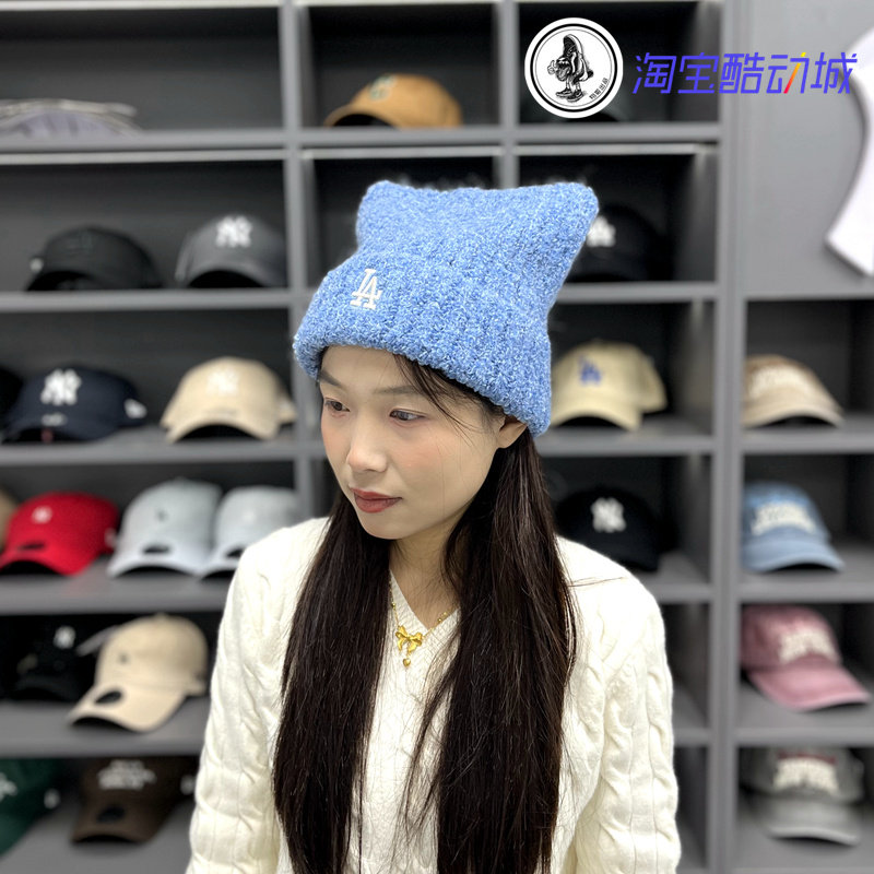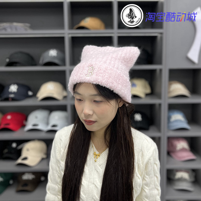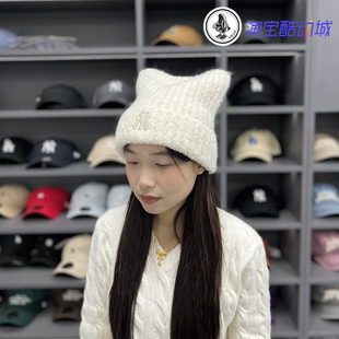 韩国MLB柳智敏同款 针织加厚保暖帽子3ABNB1156 猫耳朵毛线帽冬季