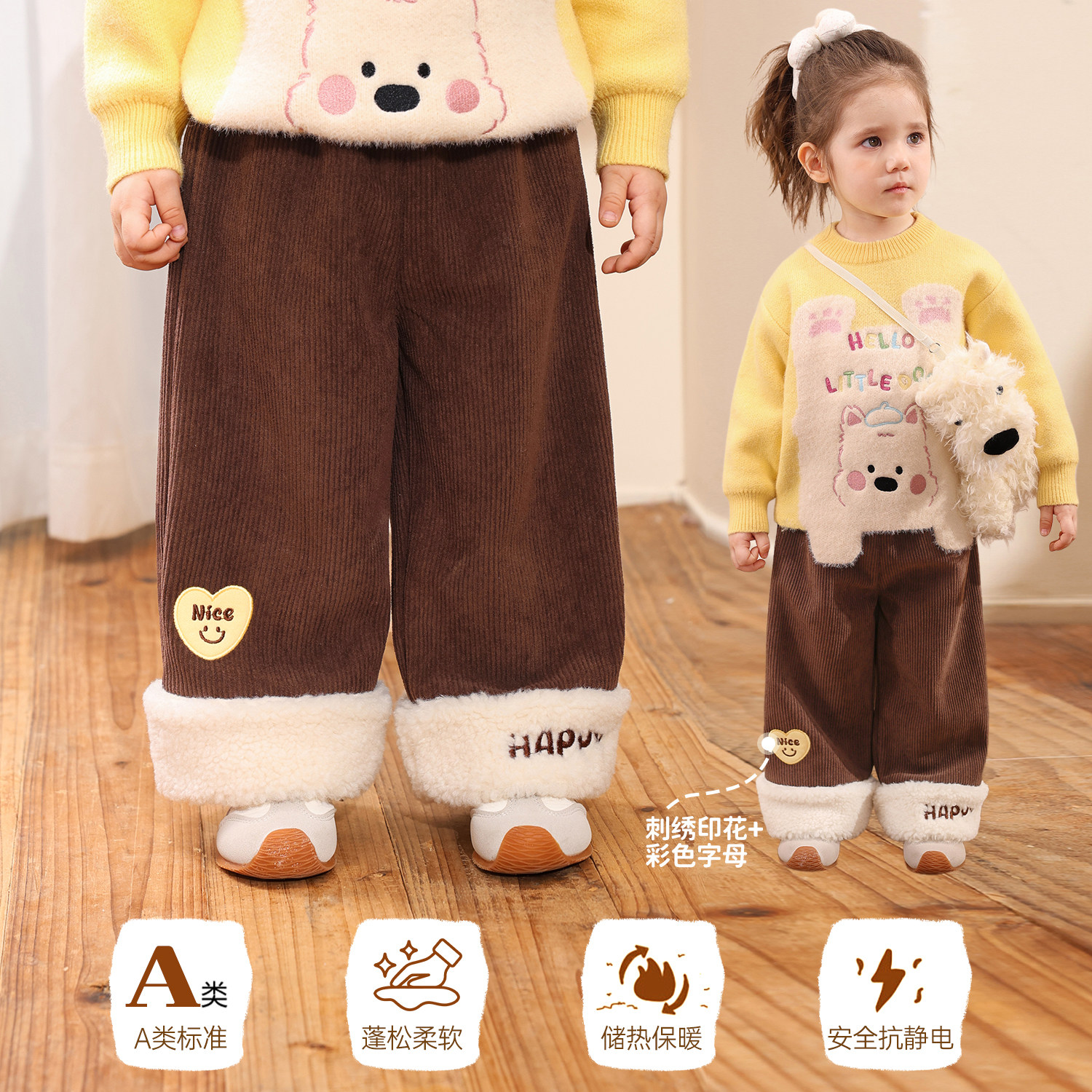 女宝宝灯芯绒裤 休闲裤 2025冬季 加绒裤 婴儿洋气直筒裤 小o爸女婴童