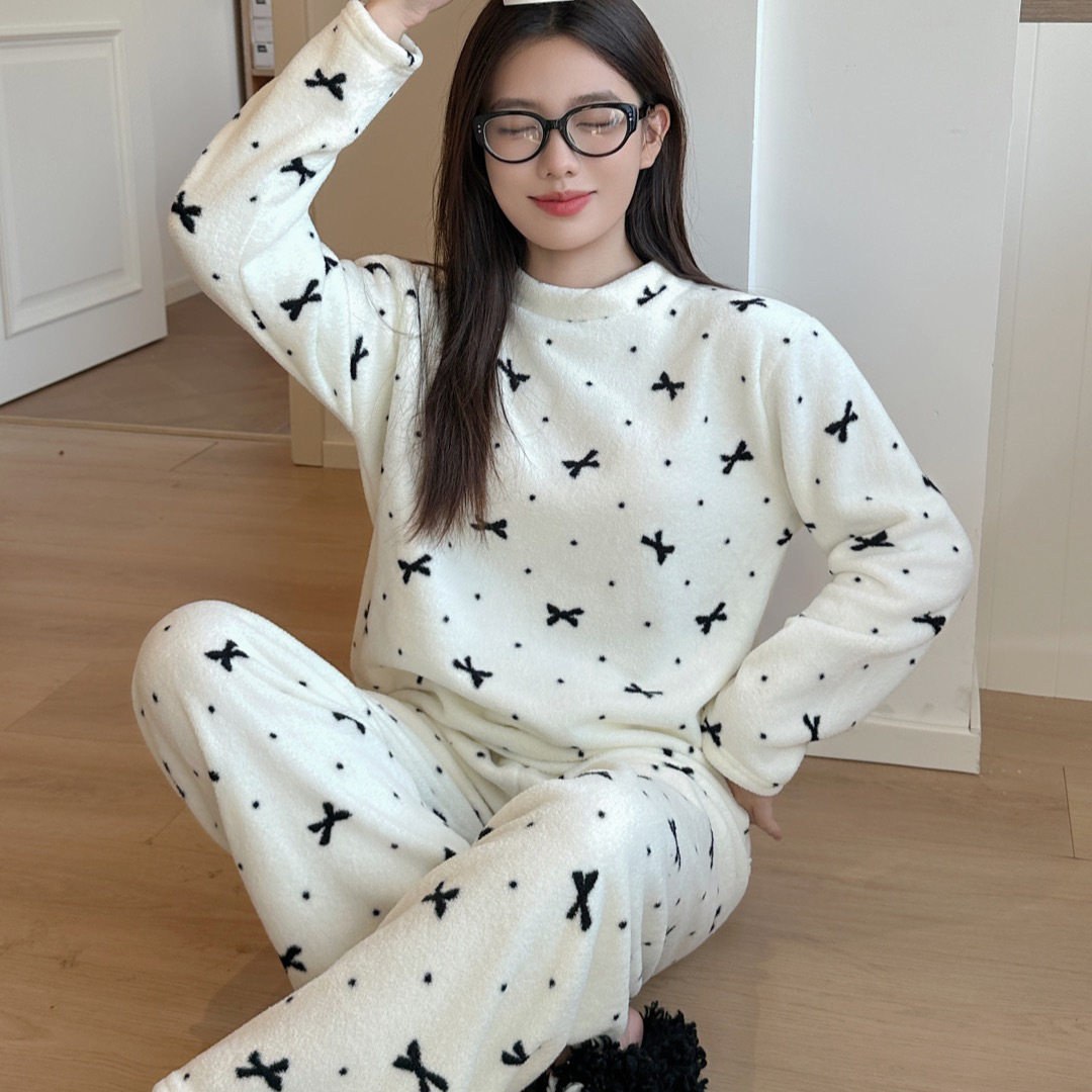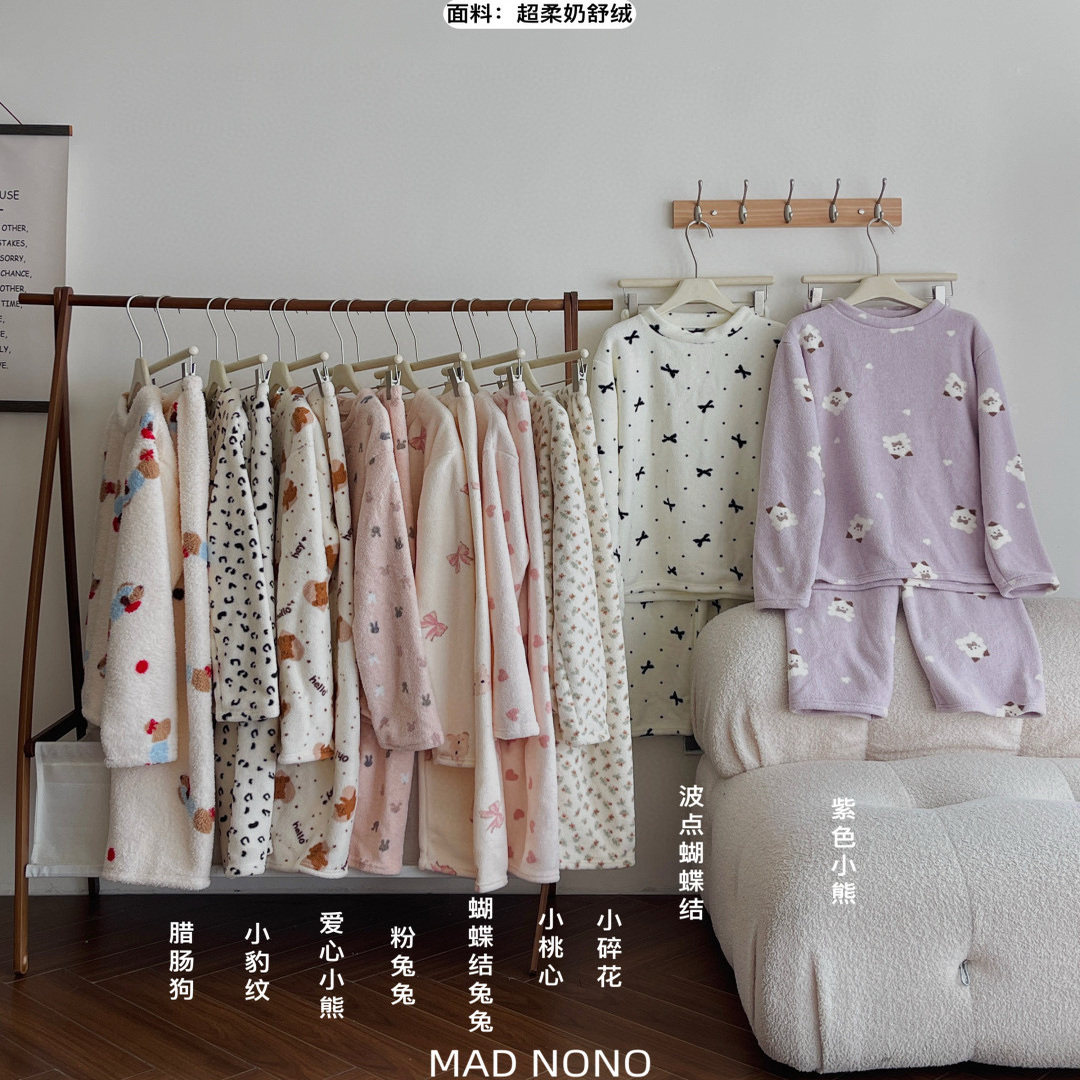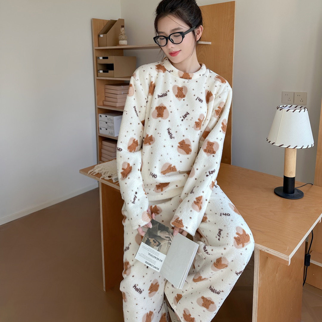 馨帮帮2025年秋冬新款 卡通小熊珊瑚绒睡衣女可外穿保暖家居服套装