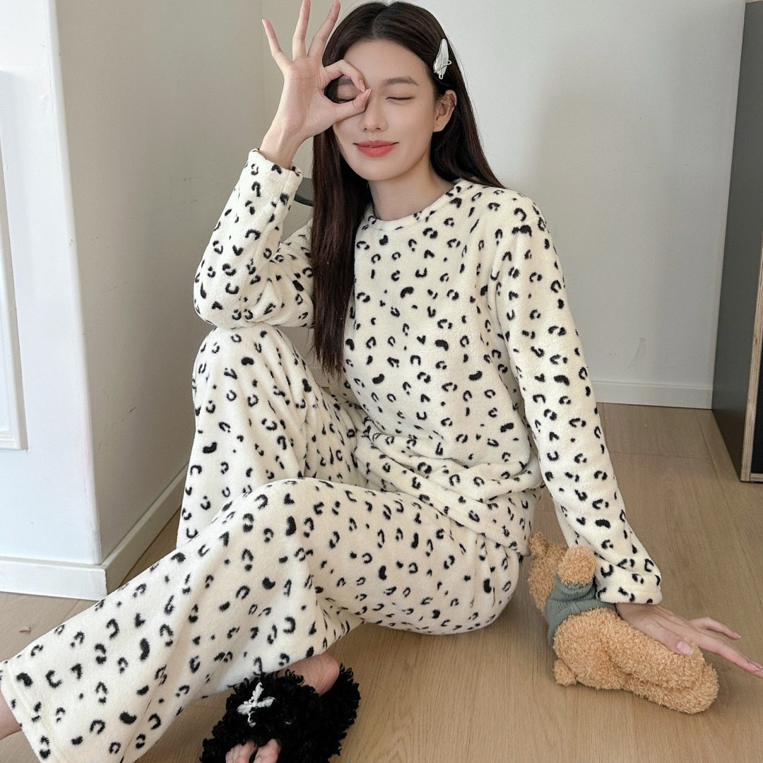 拉链立领防风家居服套装 JoyceBra高级感豹纹珊瑚绒睡衣女冬季 新款