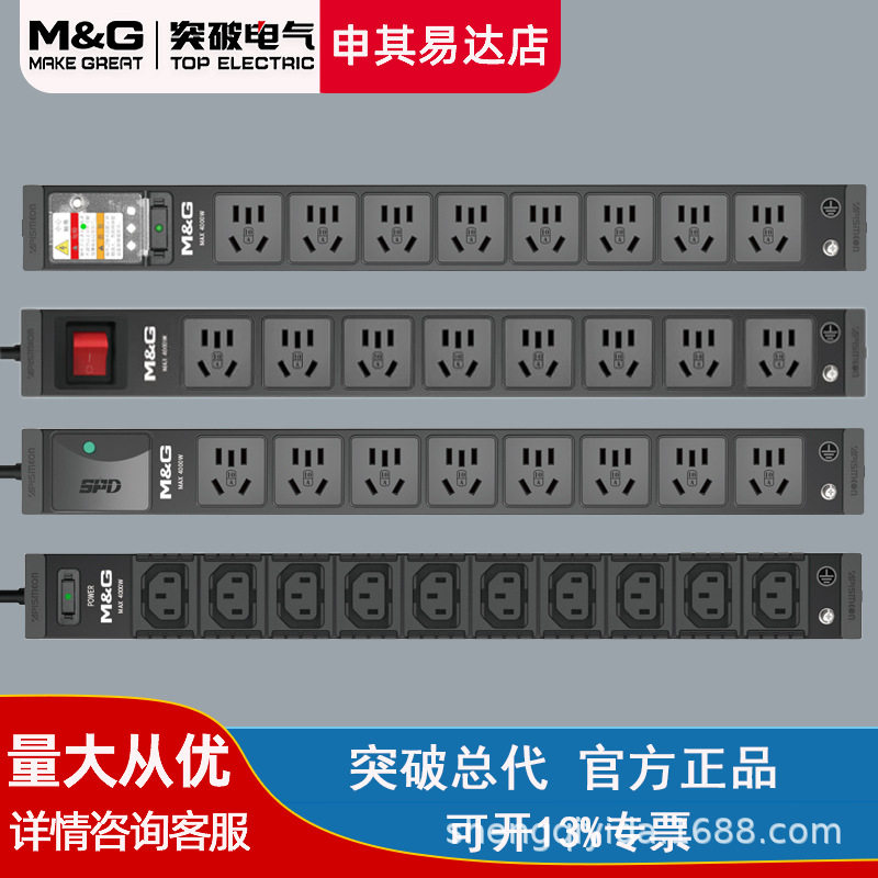 突破PDU工业机柜插座铝合金插座板机房插线板电源插排大功率排插
