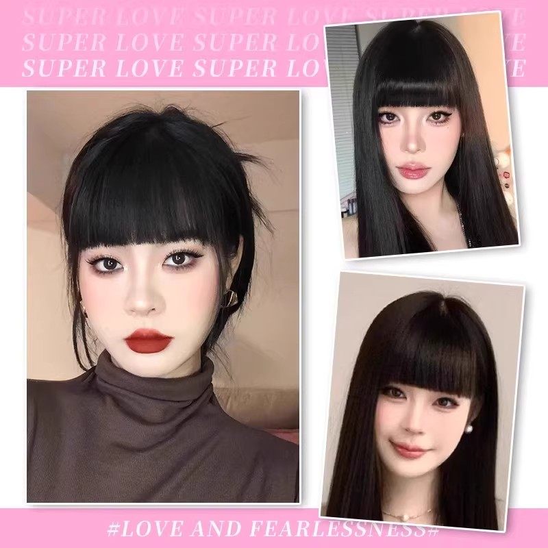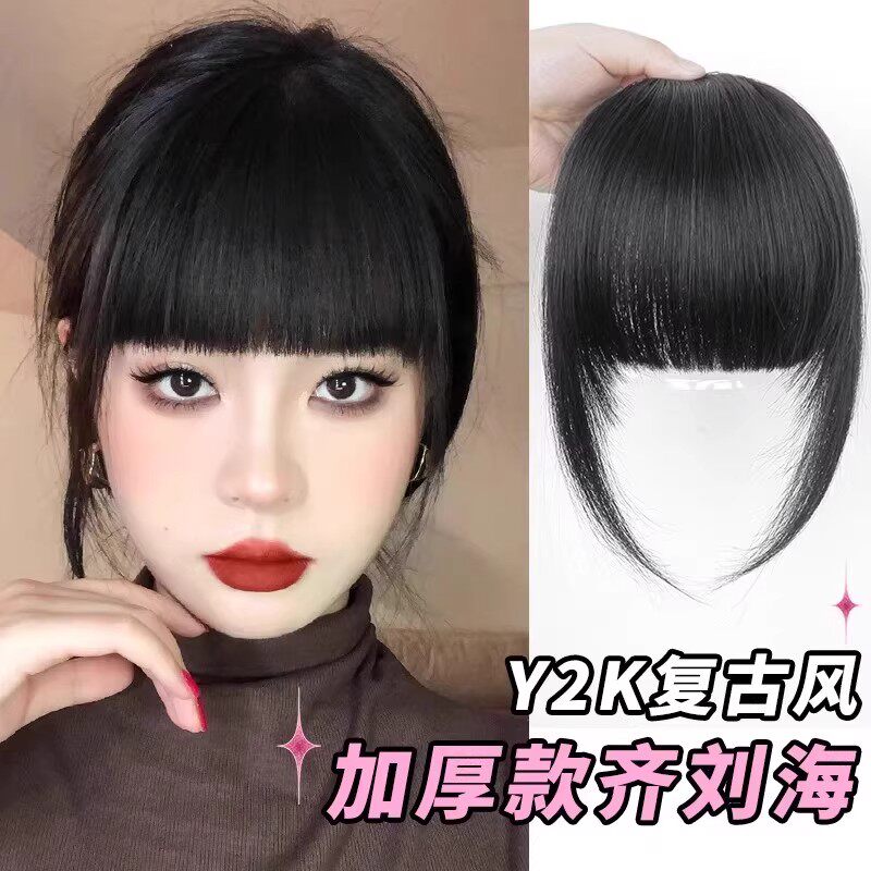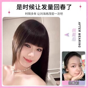 漫画齐刘海假发片女自然前额纯欲加厚真发空气刘海头顶发际线贴片