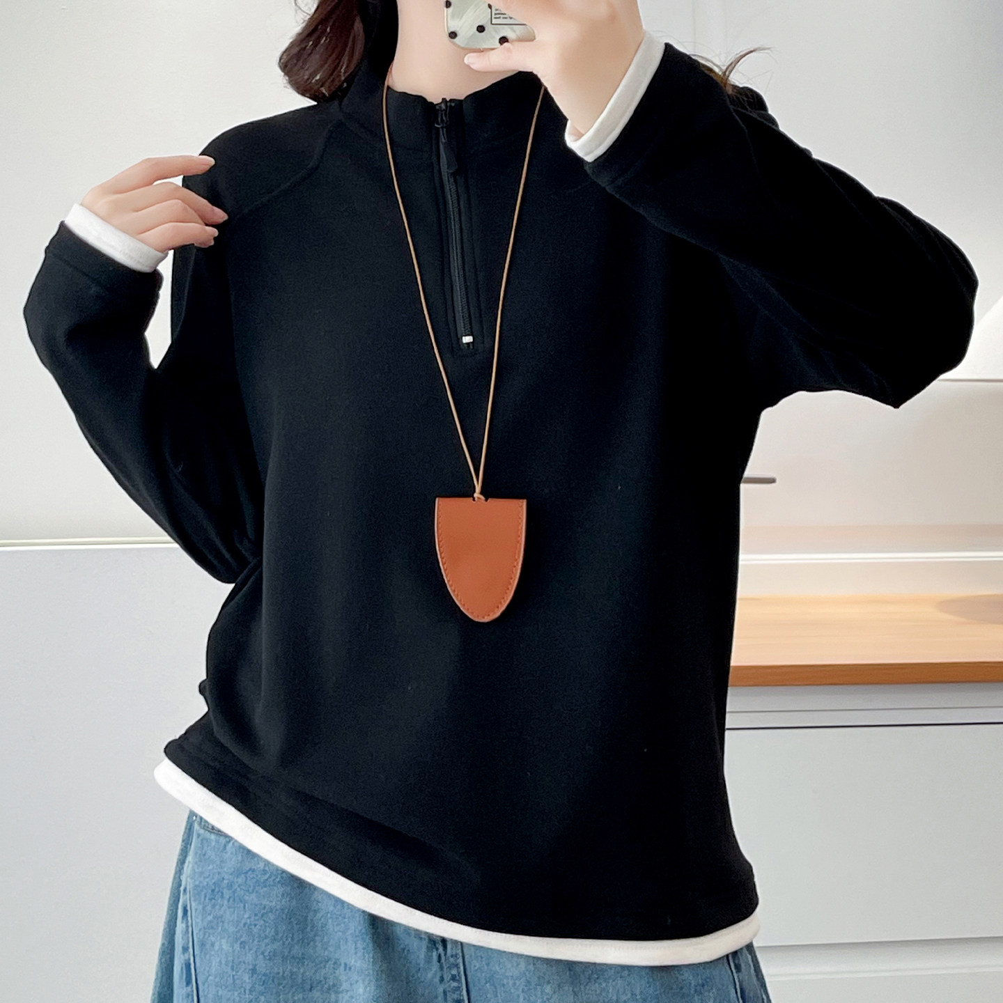 软糯弹力舒适百搭小衫 女装 内搭 木子理想大码 胖mm秋冬堆堆领打底衫