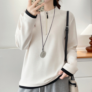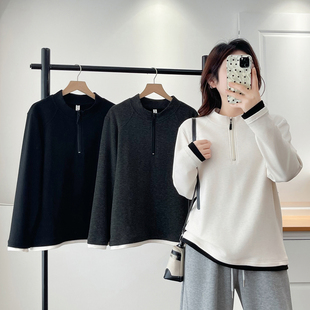 T恤长袖 大码 保暖上衣 女秋冬内搭加绒加厚修身 羊羔绒半高领打底衫