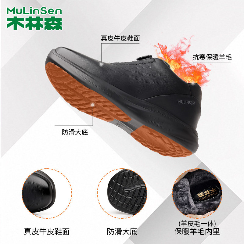 加绒保暖2025千层底加厚黑色防滑爸妈鞋 男棉鞋 子 老北京布鞋 冬季