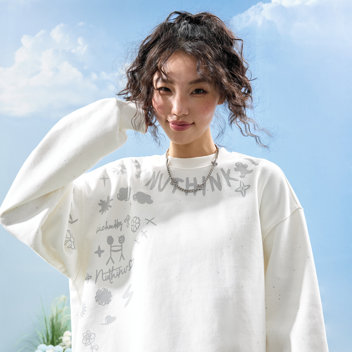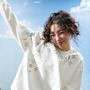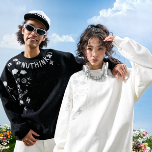 新款 美式 潮牌字母涂鸦圆领卫衣卡通贴纸潮流男女宽松情侣2025冬季