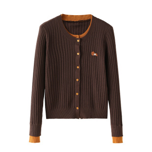 长袖 绵羊毛 女上衣内搭羊毛衫 开衫 外套女 桑蚕丝假两件撞色针织衫