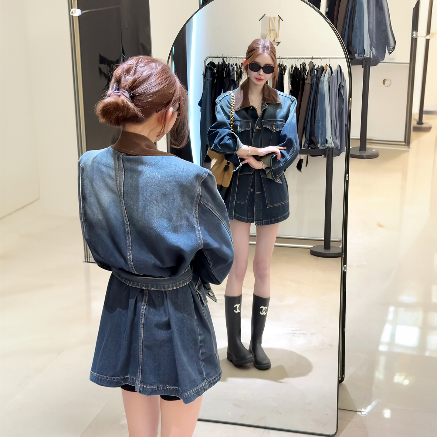 设计感蝴蝶结绑带卡其夹克外套 风衣 PUKI 原创短款