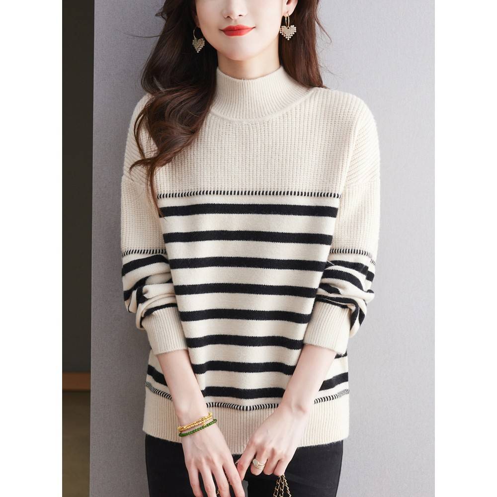 加厚加绒针织衫 纯色大码 毛衣中老年女装 中老年半高领仿貂毛妈妈装