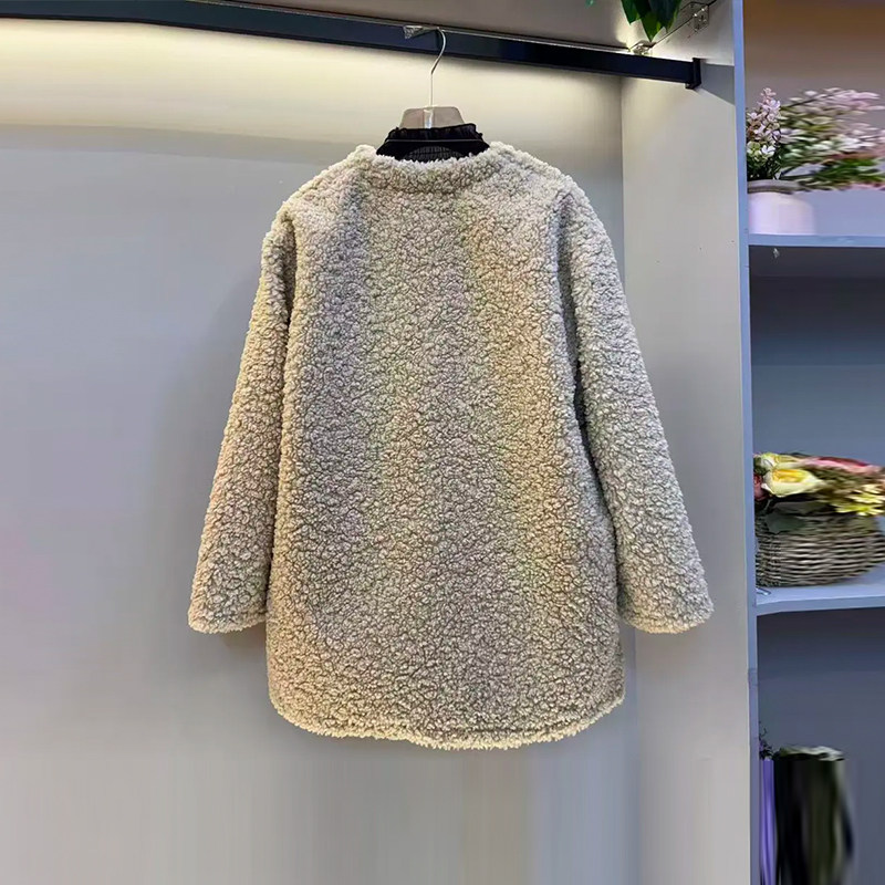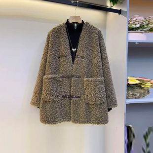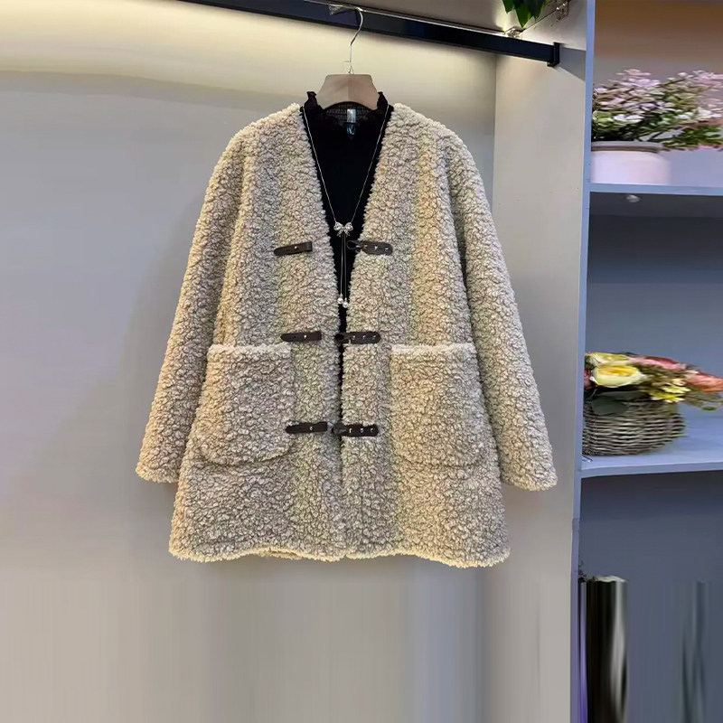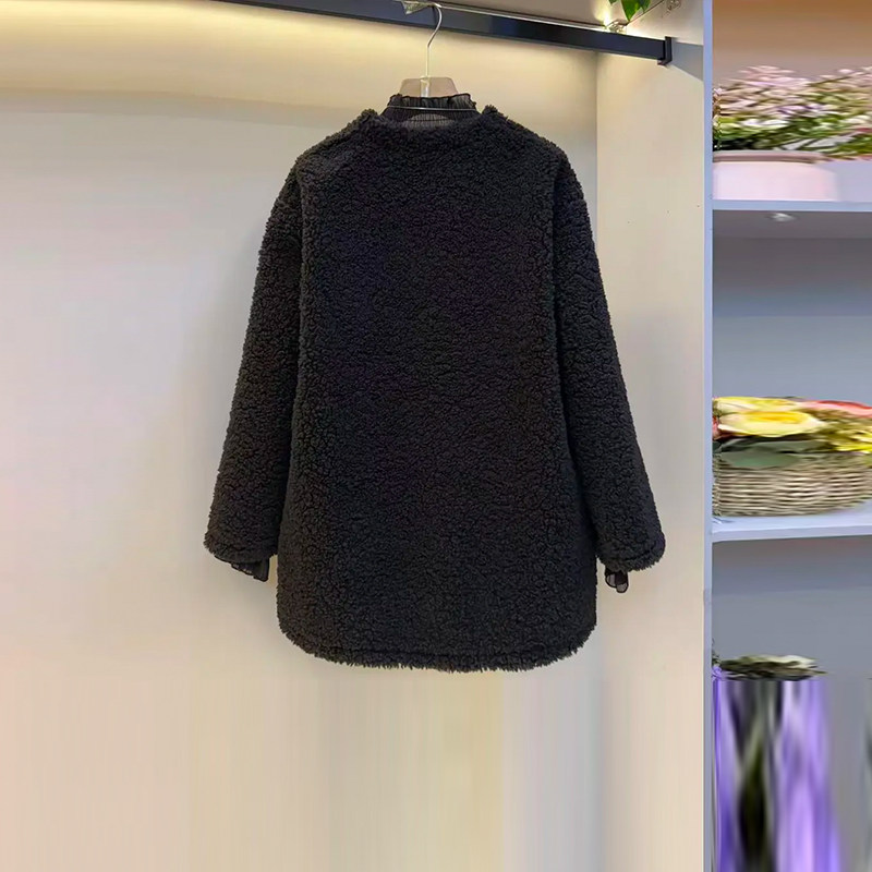 款 胖MM显瘦V领长袖 冬季 女装 洋气百搭显瘦上衣 羊羔毛外套加肥大码