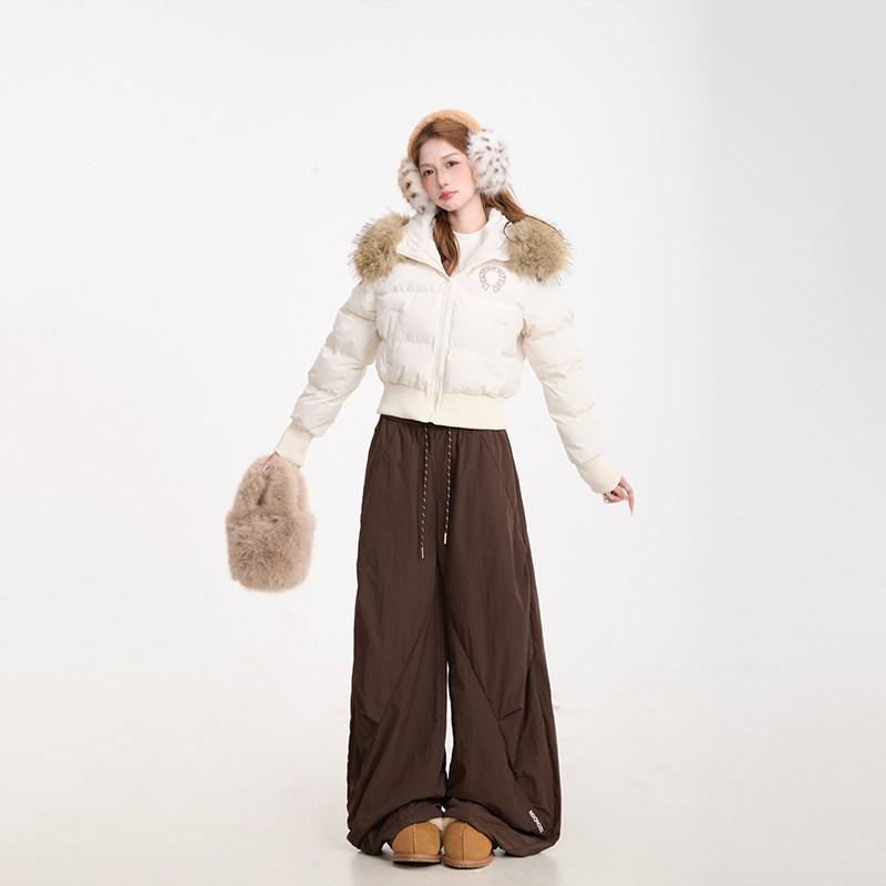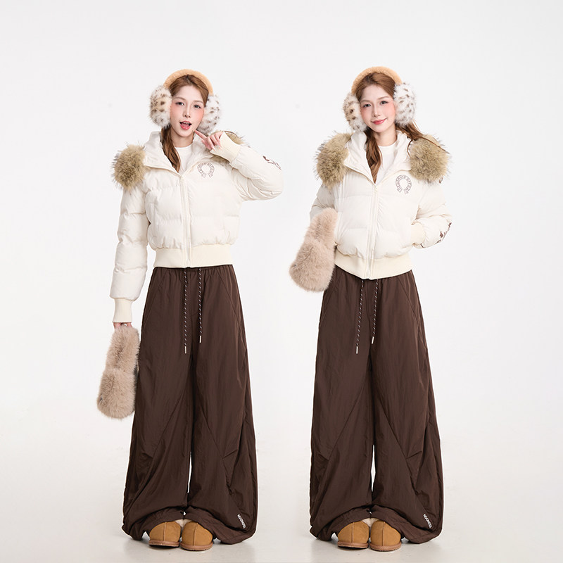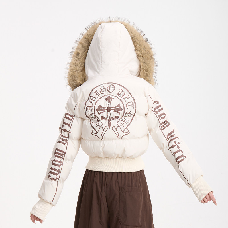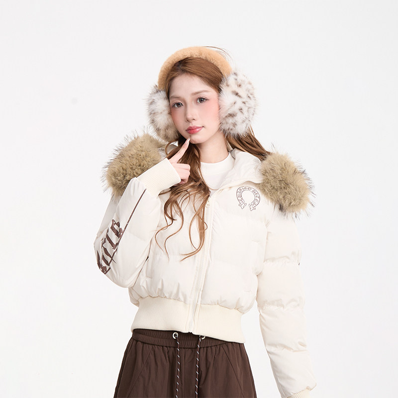 棉服外套 甜美加厚保暖短款 NERESUM美式 复古印花毛领棉衣女冬季