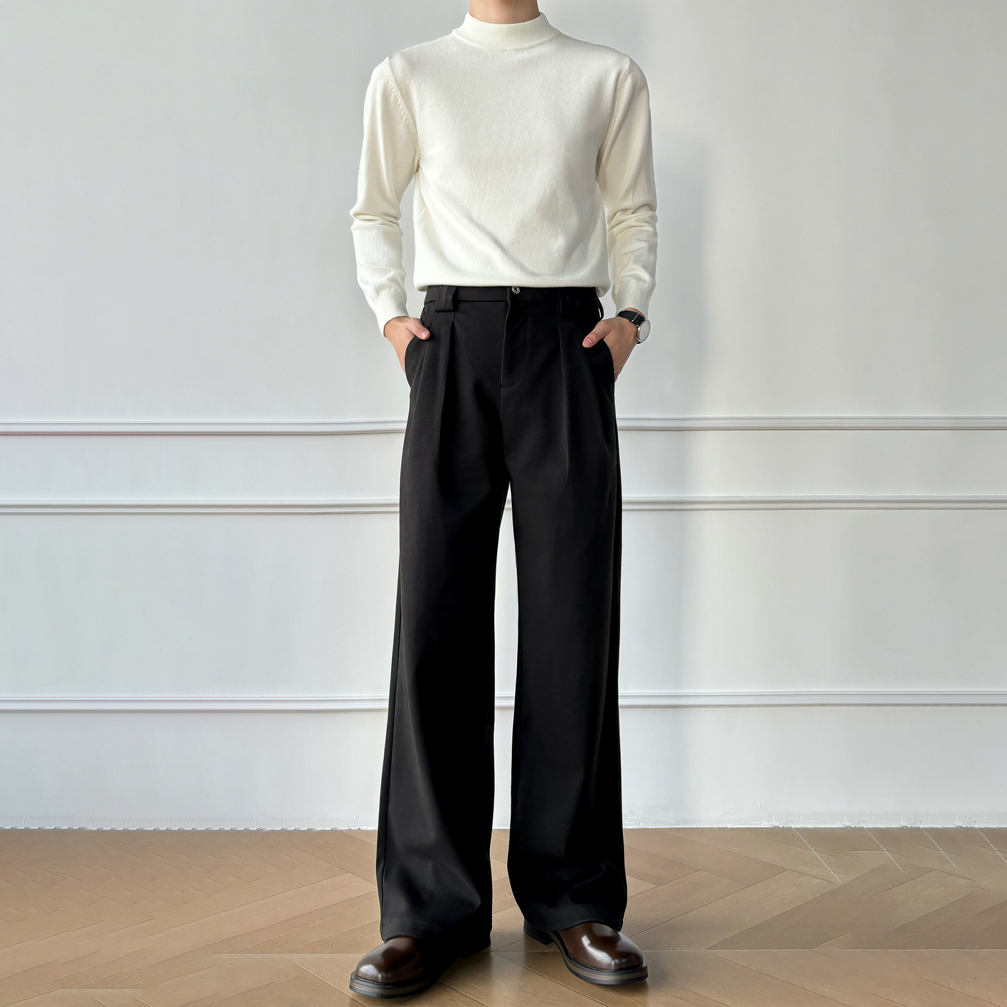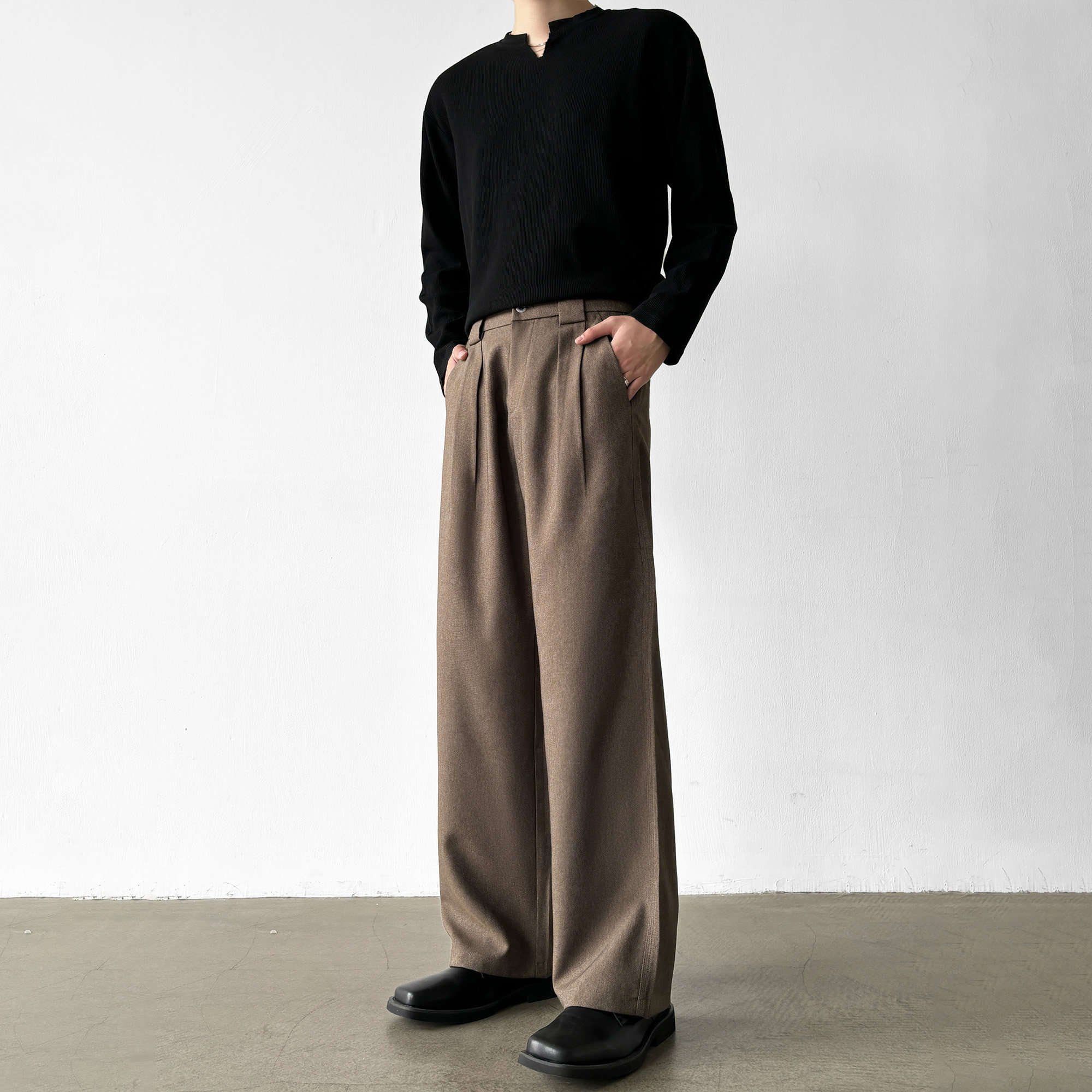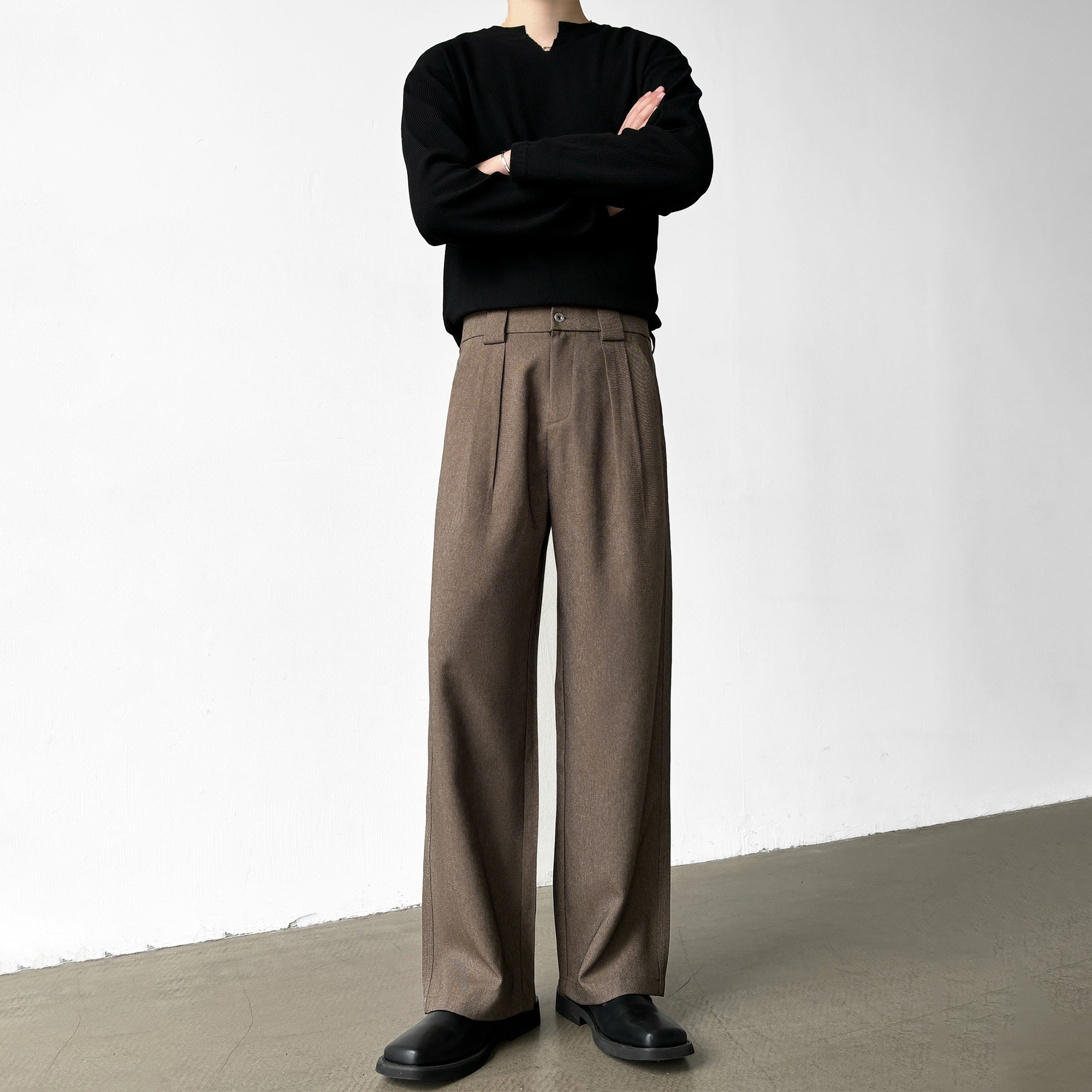 高品质三本针工艺A字直筒宽松西裤 夏季 男 单压褶设计 男笙HOME