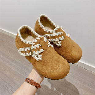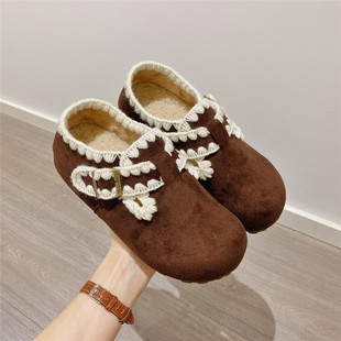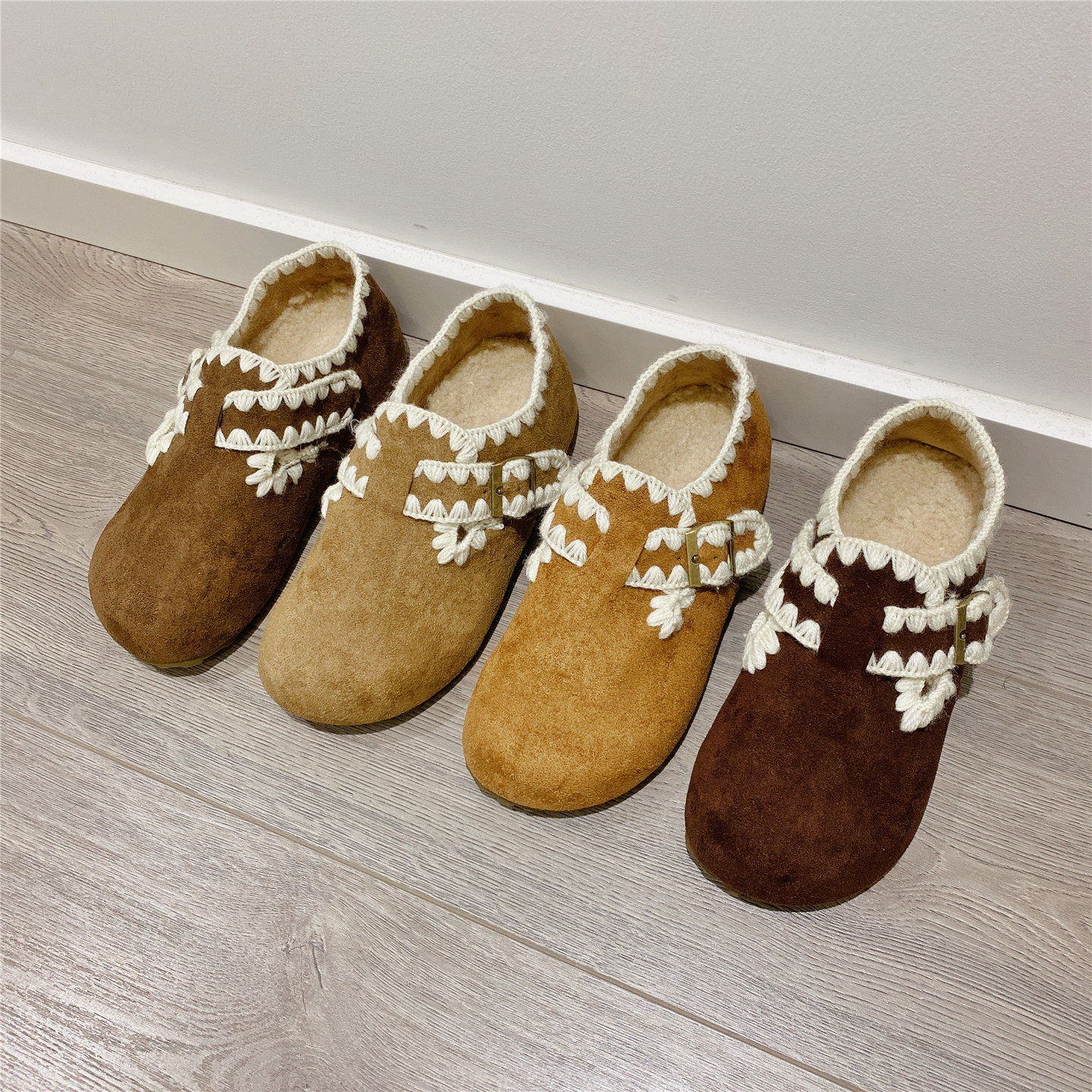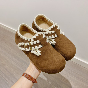 女乐福鞋 内增高百搭单鞋 2025冬季 新款 女 复古毛毛鞋 加绒棉鞋 勃肯鞋