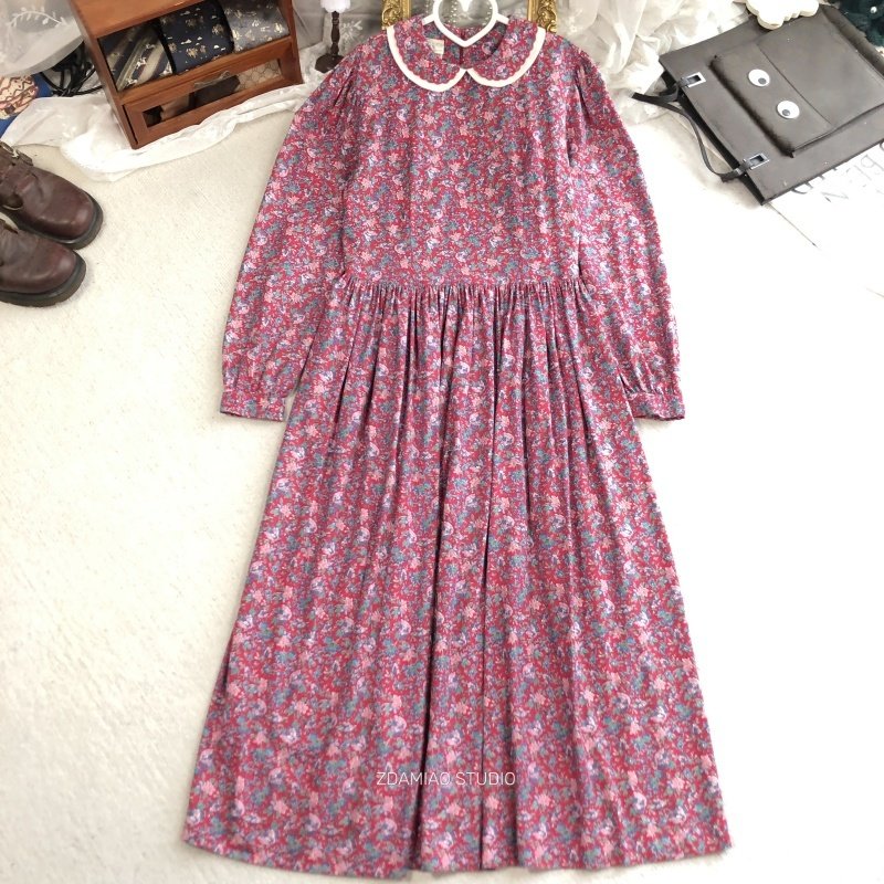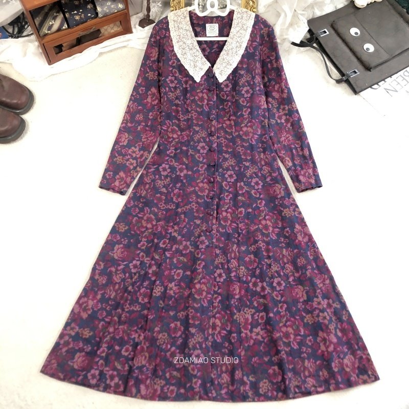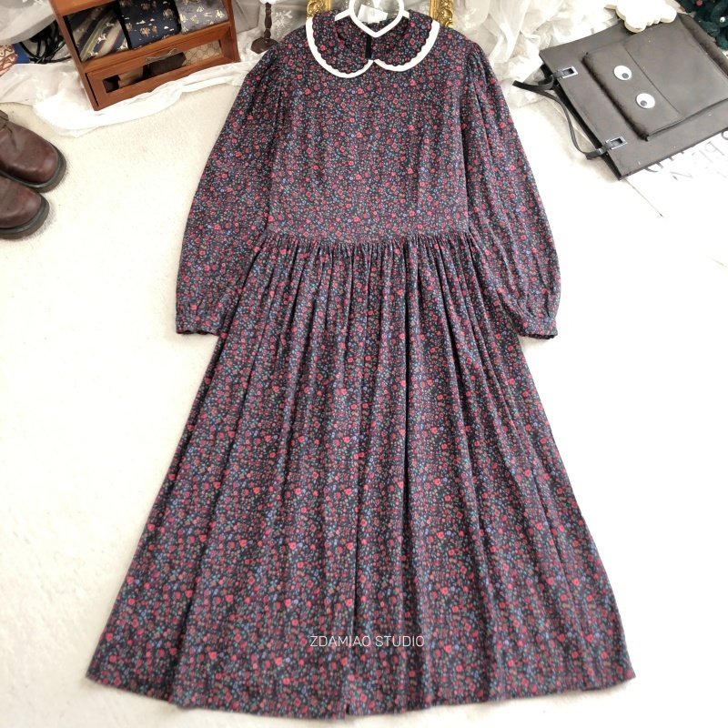 海淘英产laura ashley劳拉花柄蕾丝领复古vintage连衣裙秋冬长袖