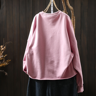 慵懒风圆领休闲漂亮减龄粉色上衣 超火胖mm大码 卫衣女款 2026春新款