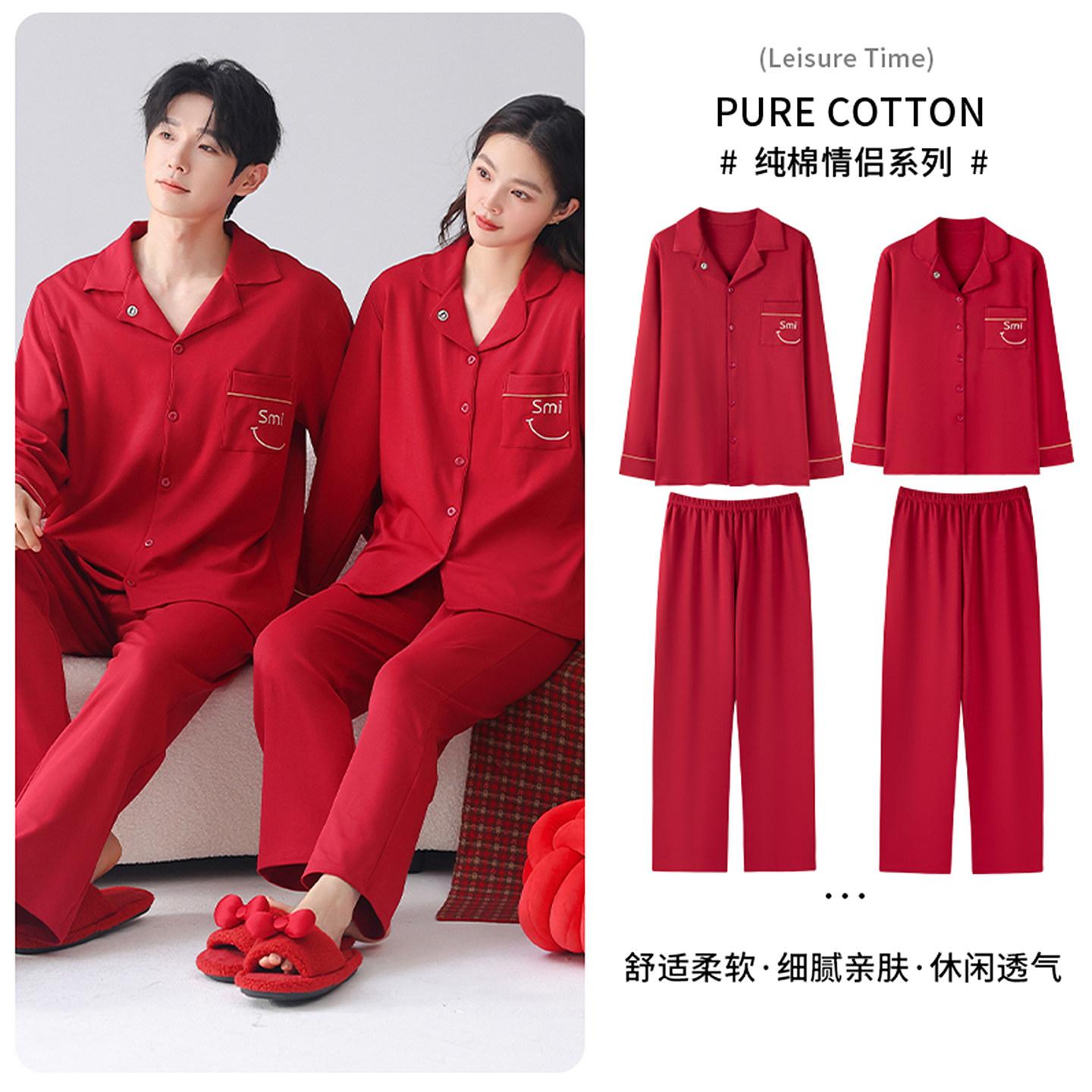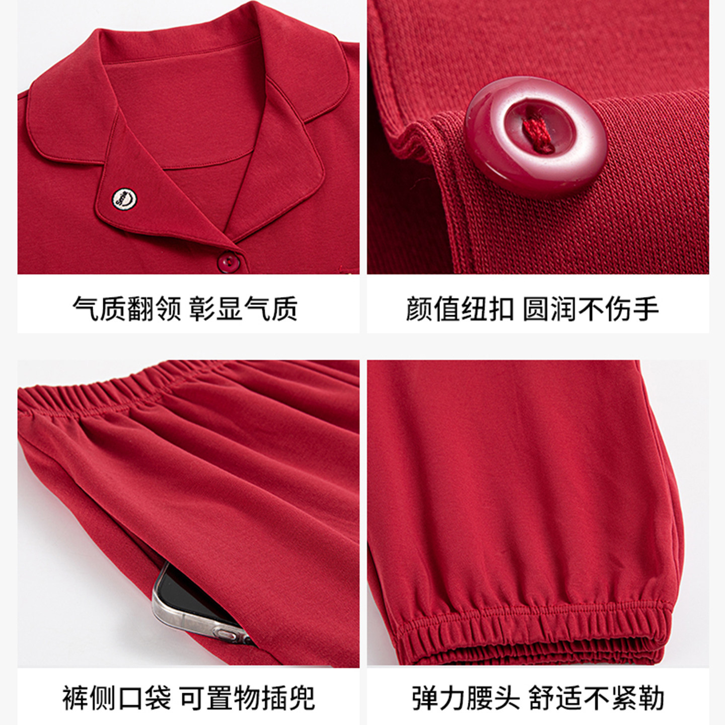 新婚喜庆家居服HJ 本命年长袖 浪莎红色睡衣秋冬季 纯棉结婚情侣套装