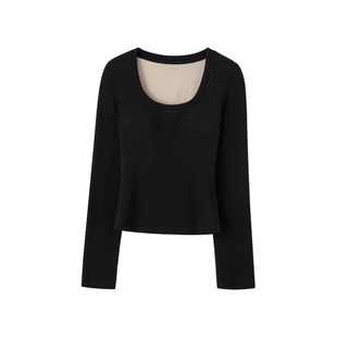 百搭显瘦撞色打底衫 半高领德绒长袖 拼接大码 新款 女上衣T恤B 秋冬季