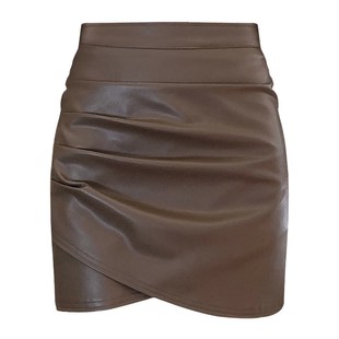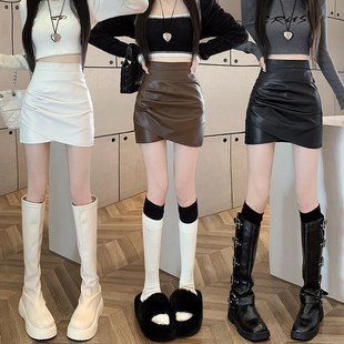 速发娜娜新质PU皮半身裙2A24气款 高腰褶皱百搭包臀裙0字裙