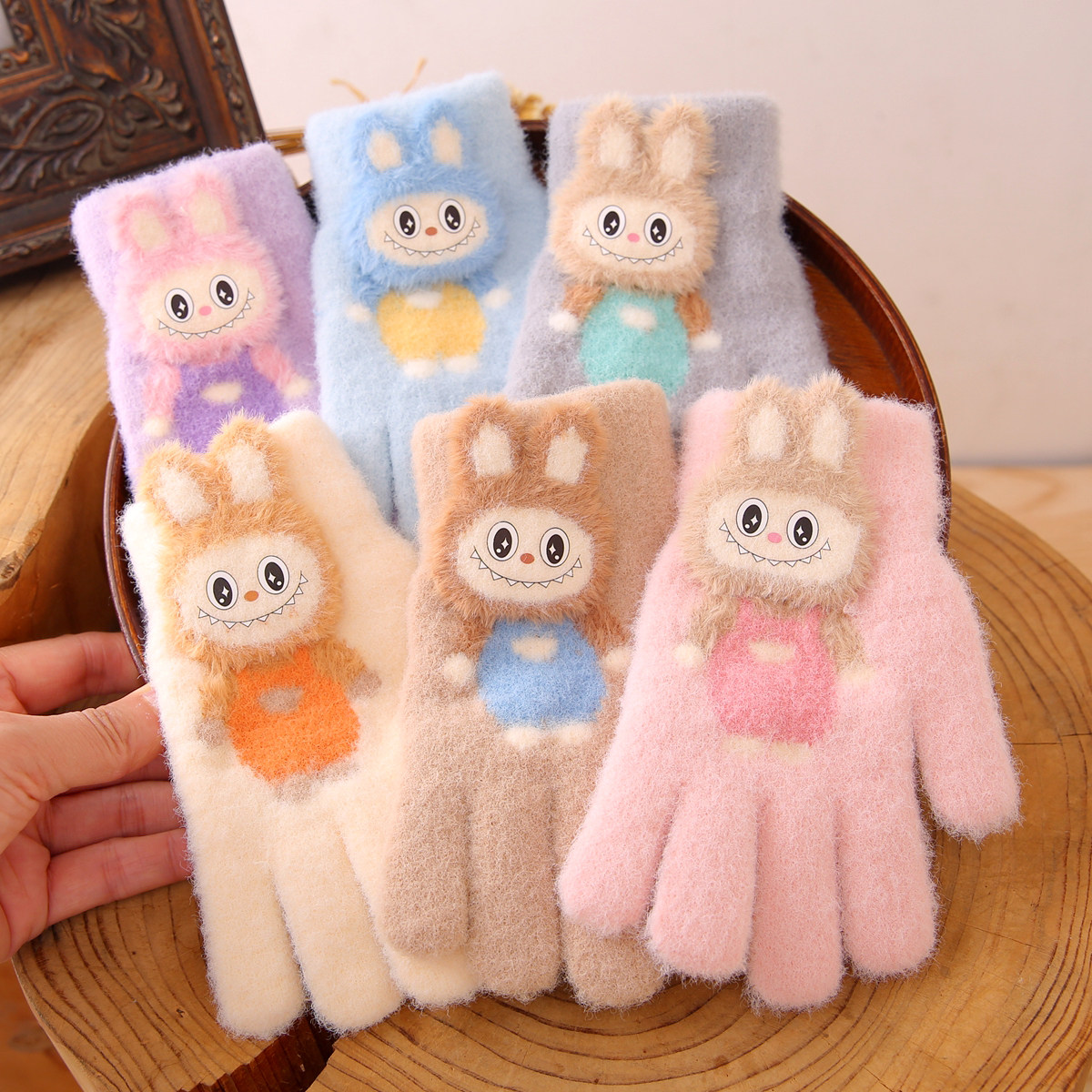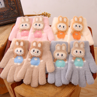 kt猫钻石毛绒手套儿童HelloKitty分指触屏女童冬加厚防风防寒保暖