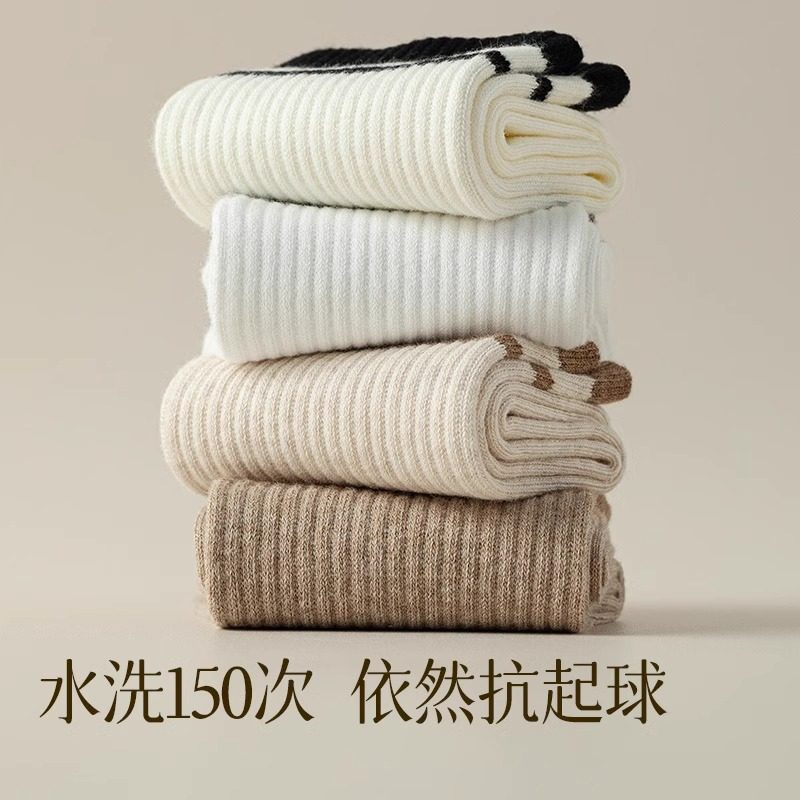 佐印袜子男士 中筒白色运动袜 冬纯棉纱线加厚长袜防臭抗菌吸汗男款
