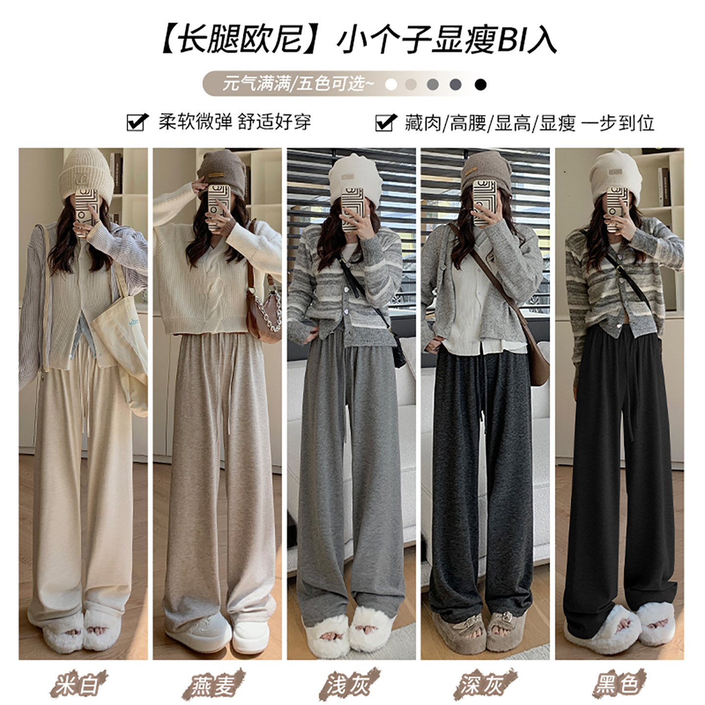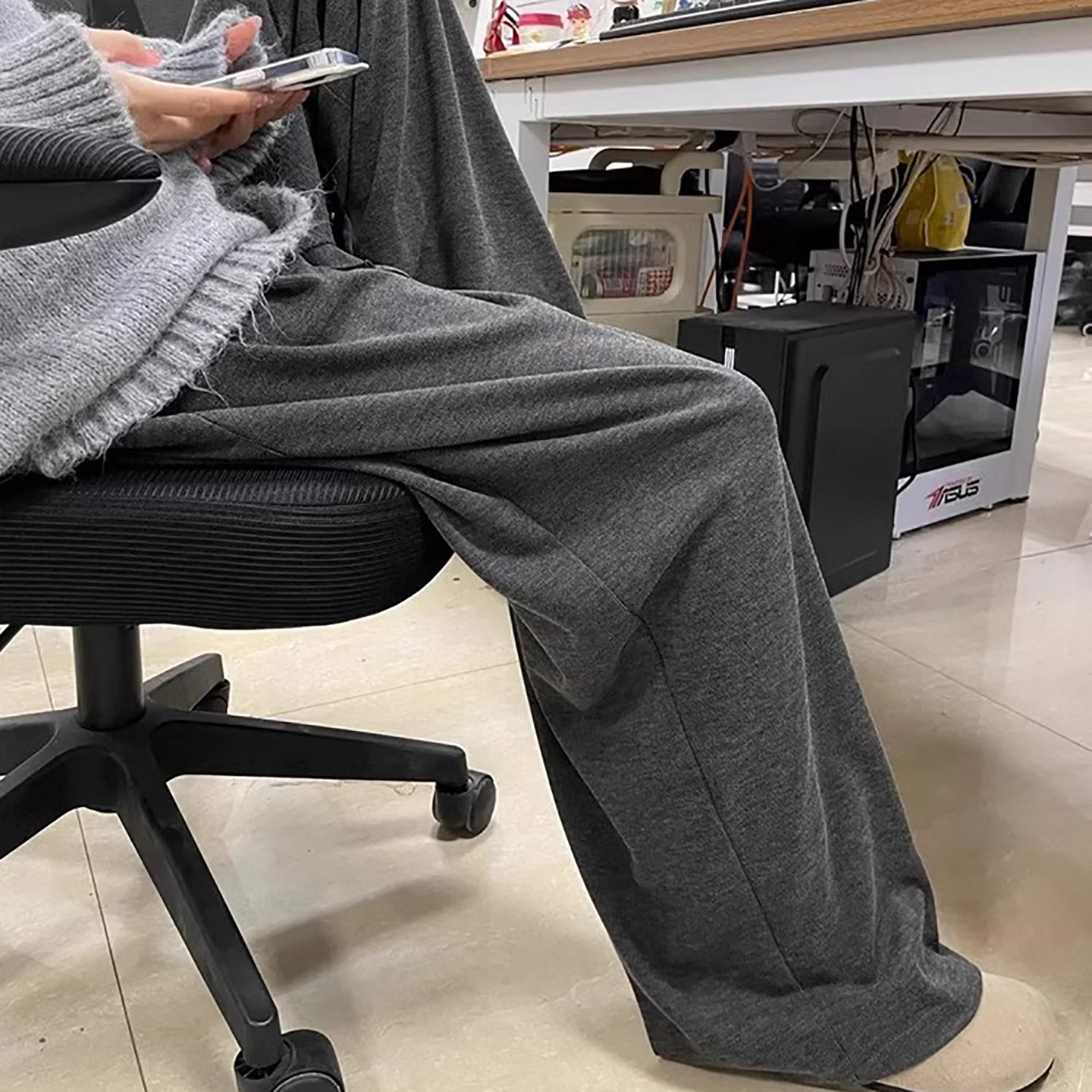 子 加绒直筒休闲裤 深灰色糯米裤 女秋冬高腰垂感宽松bf慵懒风阔腿裤