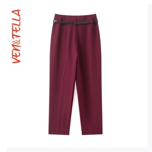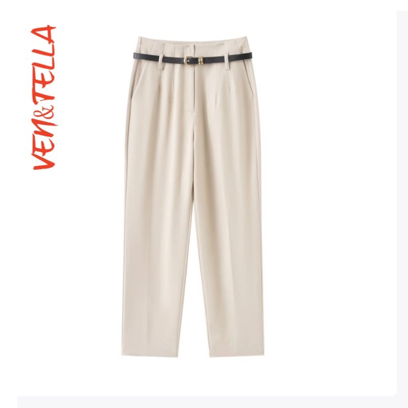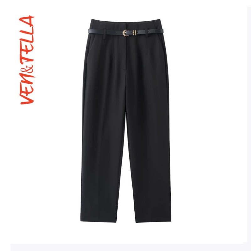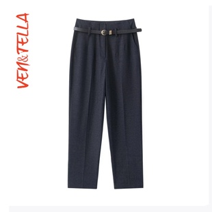 VEN&TELLA秋冬欧美风 4387248 气质简约修身 直筒休闲高腰腰带长裤