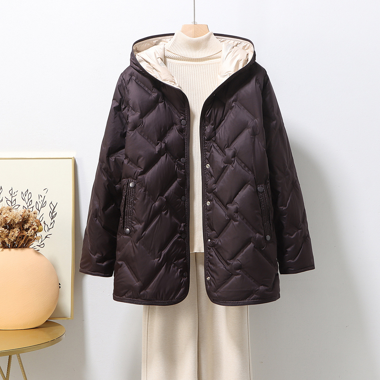 宽松显瘦百搭小个子连帽外套 内胆大码 2025新款 轻薄羽绒服女中长款