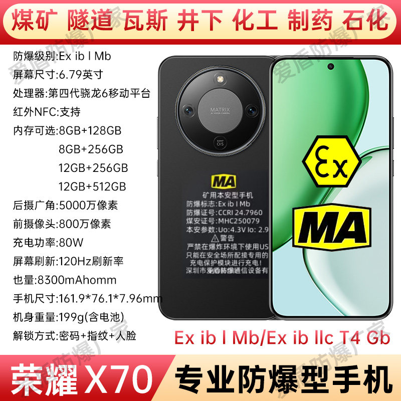 荣I耀X70 MA煤矿用井下瓦斯隧道防爆手机化工厂天然气油站NFC红外